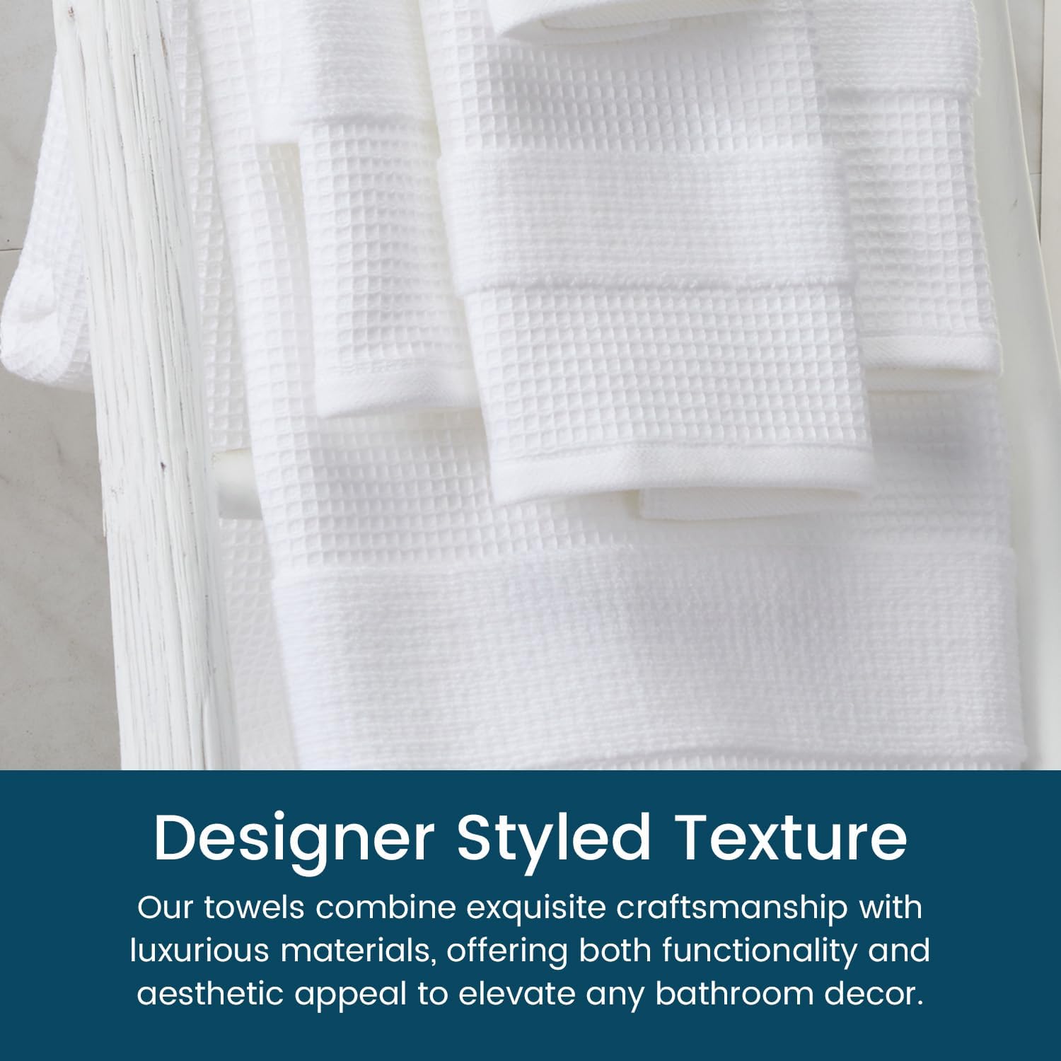 Aire & Raine 100% Cotton Waffle Bath Towel Set - 4 Pack | Lightweight Reversible Waffle Towels for Bathroom | 4 Pack - White