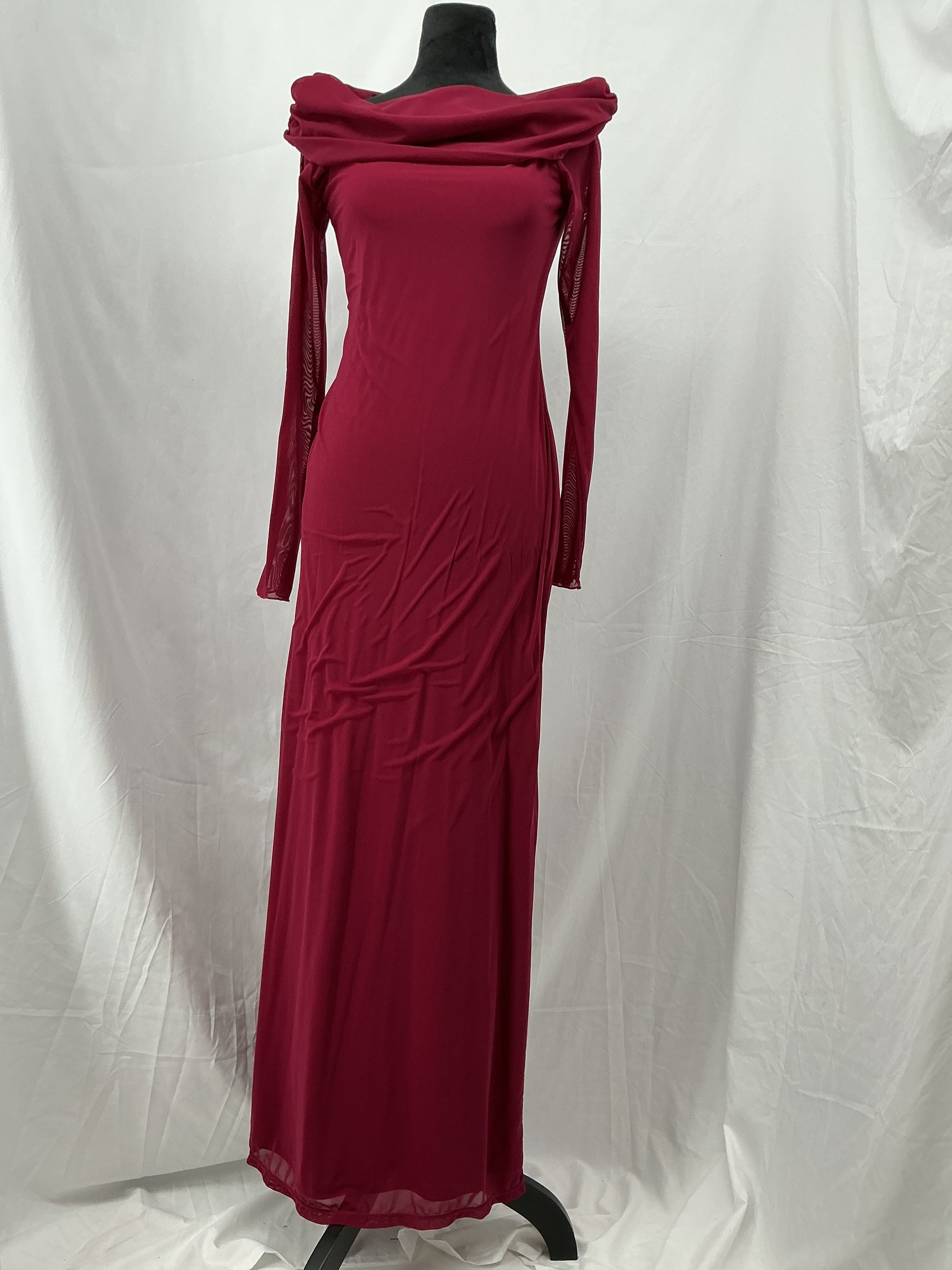 Burgundy Long-Sleeve Long Dress Size L