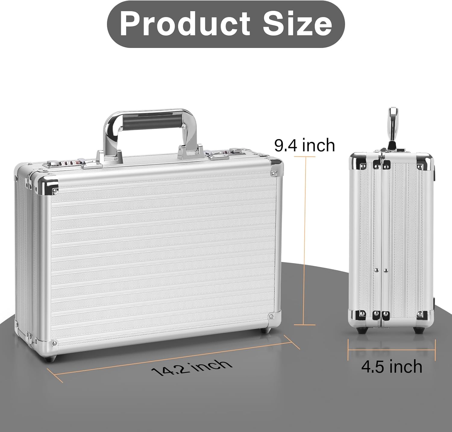 File Organizer Storage Box - 14.2 x 9.4 x 4.5 Inch Medium, Portable Locking Storage Totes with Dual Combination Locks for Cash, Documents & Valuables - Silver
