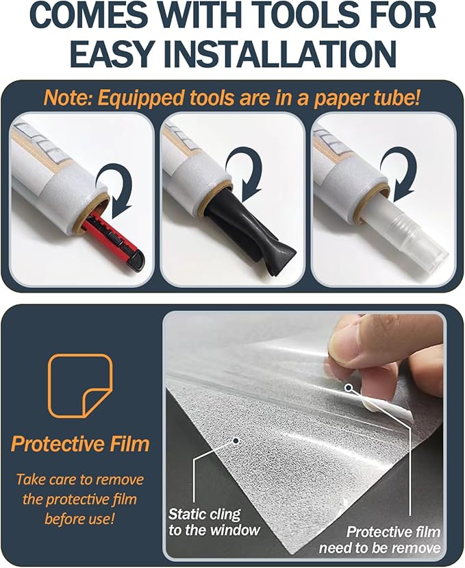 Frosted Glass Window Privacy Film with Installation Tools, Removable, Peep-Proof, Static Cling, Heat Control, UV Protection, Ideal for Home Office Bathroom Door (17.5 x 78.7 Inch)