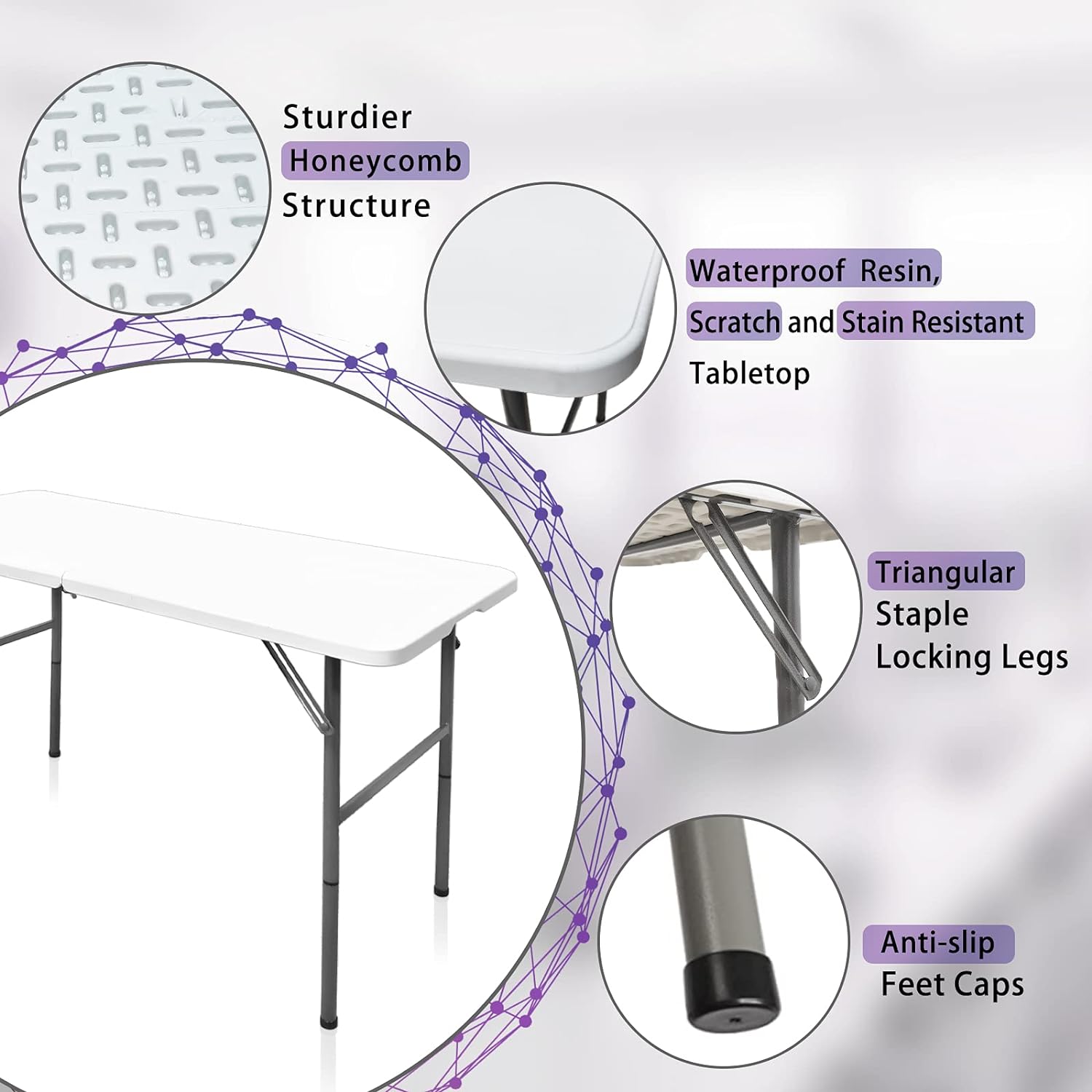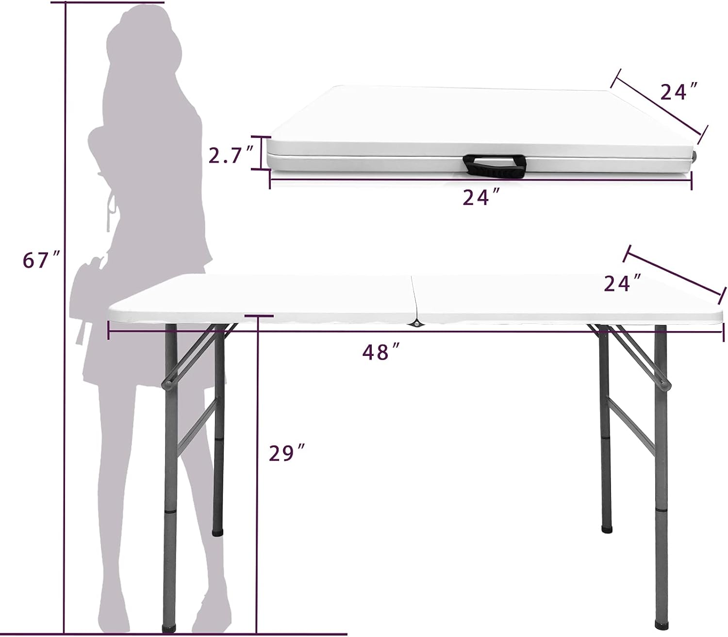 Gocamptoo Folding Table,4ft Indoor Outdoor Heavy Duty Portable Folding Square Plastic Dining Table w/Handle, Lock for Picnic, Party, Camping (4 FT) …