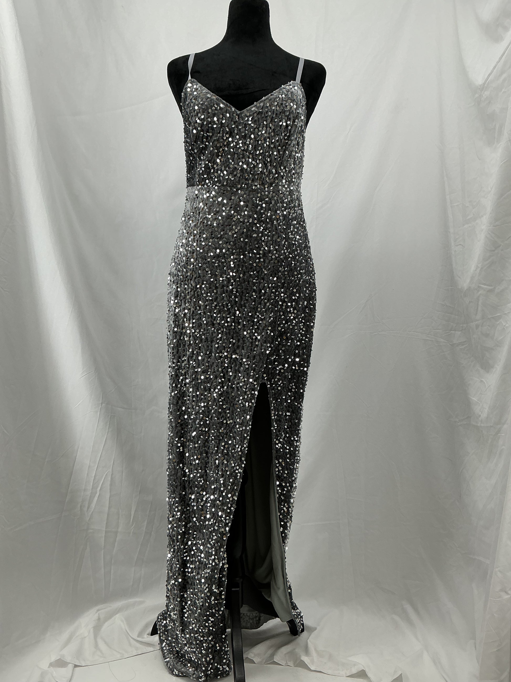 Gray Long Dress with Silver Sequins - Size M