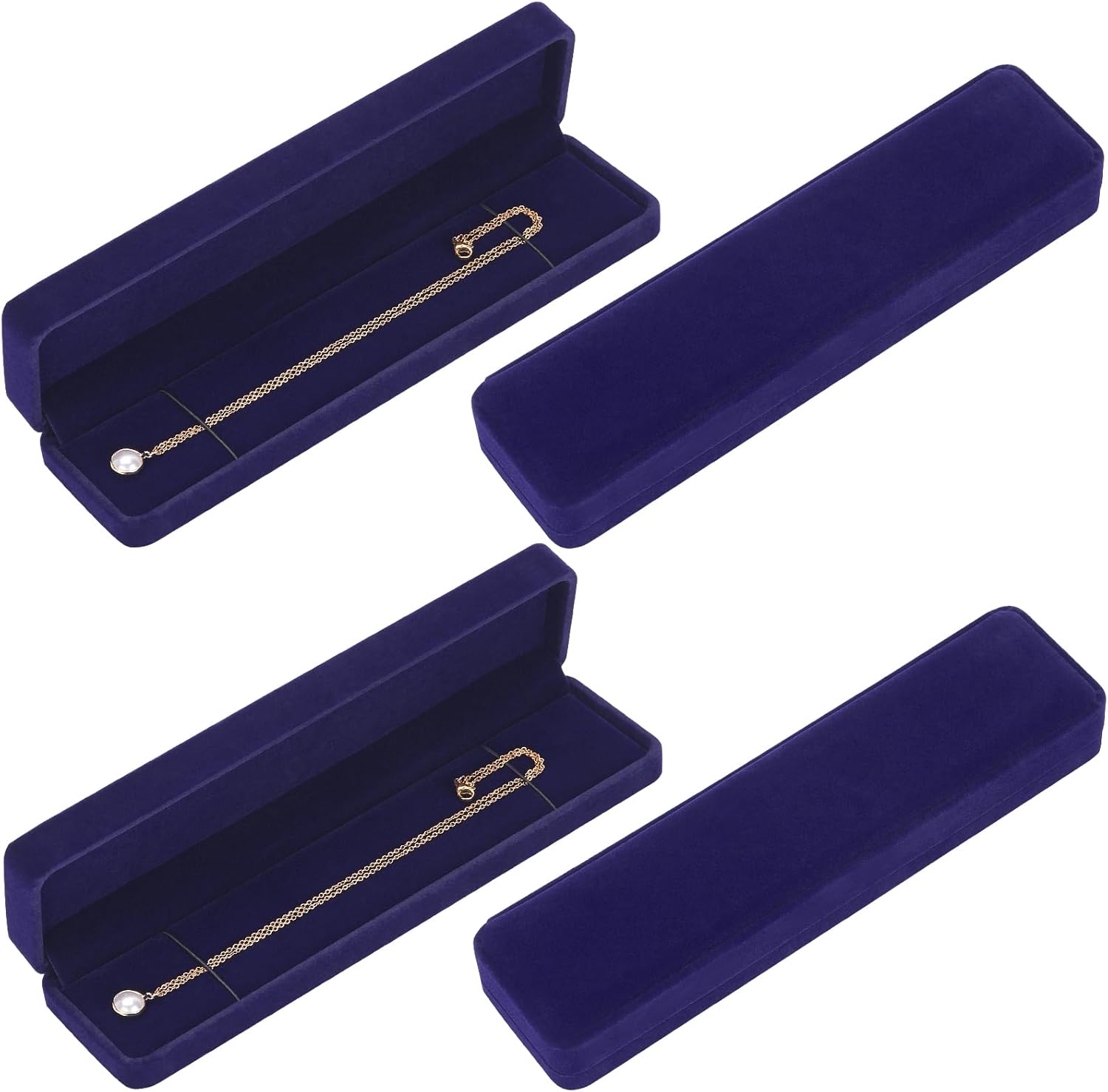 LETURE 4 Pieces Velvet Bracelet, Small Long Jewelry Watch Gift Box for Proposal, Wedding, Engagement, Christmas (BLUE- Necklace Pendant Jewelry Box4PCS)