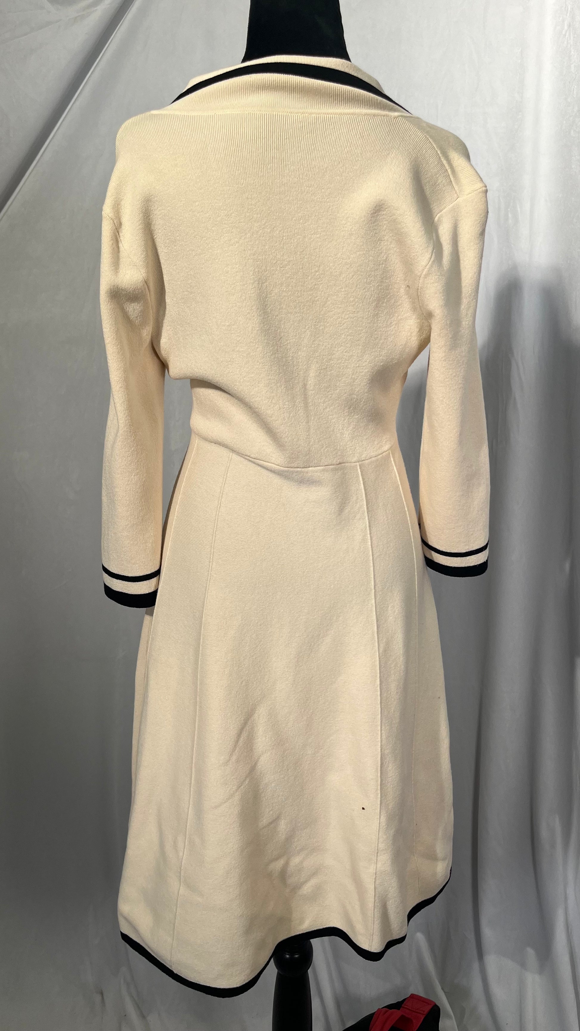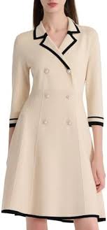 - FUNCTIONALITY - This women's dress is made of skin-friendly and comfortable fabric. It is very stretchy and can fit all body shapes well, suitable for teachers business casual work and so on. Mini long sleeve sweater dress with knit button design front placket one-piece collar 3/4 quarter sleeve fitted double breasted dress with white lines.