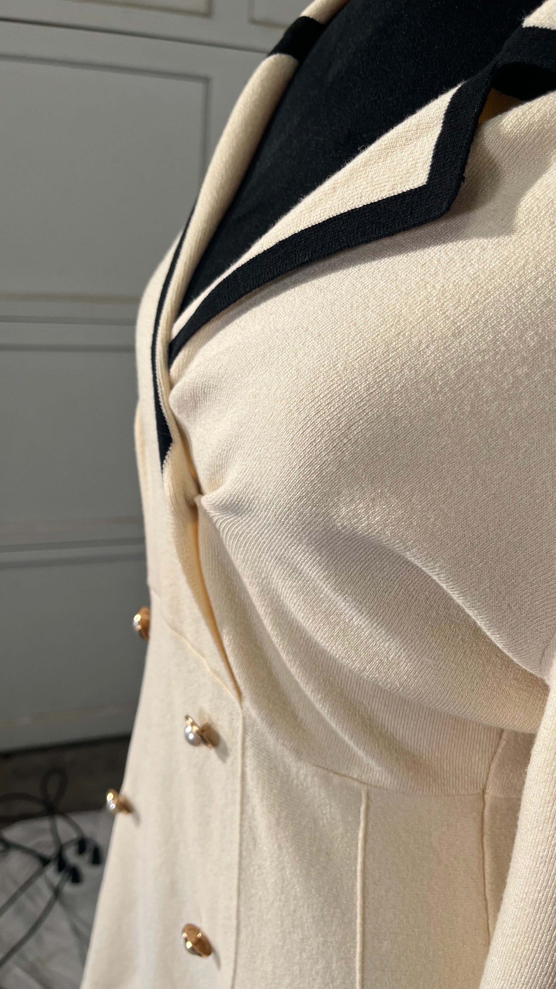 - HIGHLIGHTS - The A-line silhouette and high-waisted design are versatile and flattering for all body types. The suit collar featuring color-blocking exudes a vintage trend, while the pearl buckles add a touch of elegance.