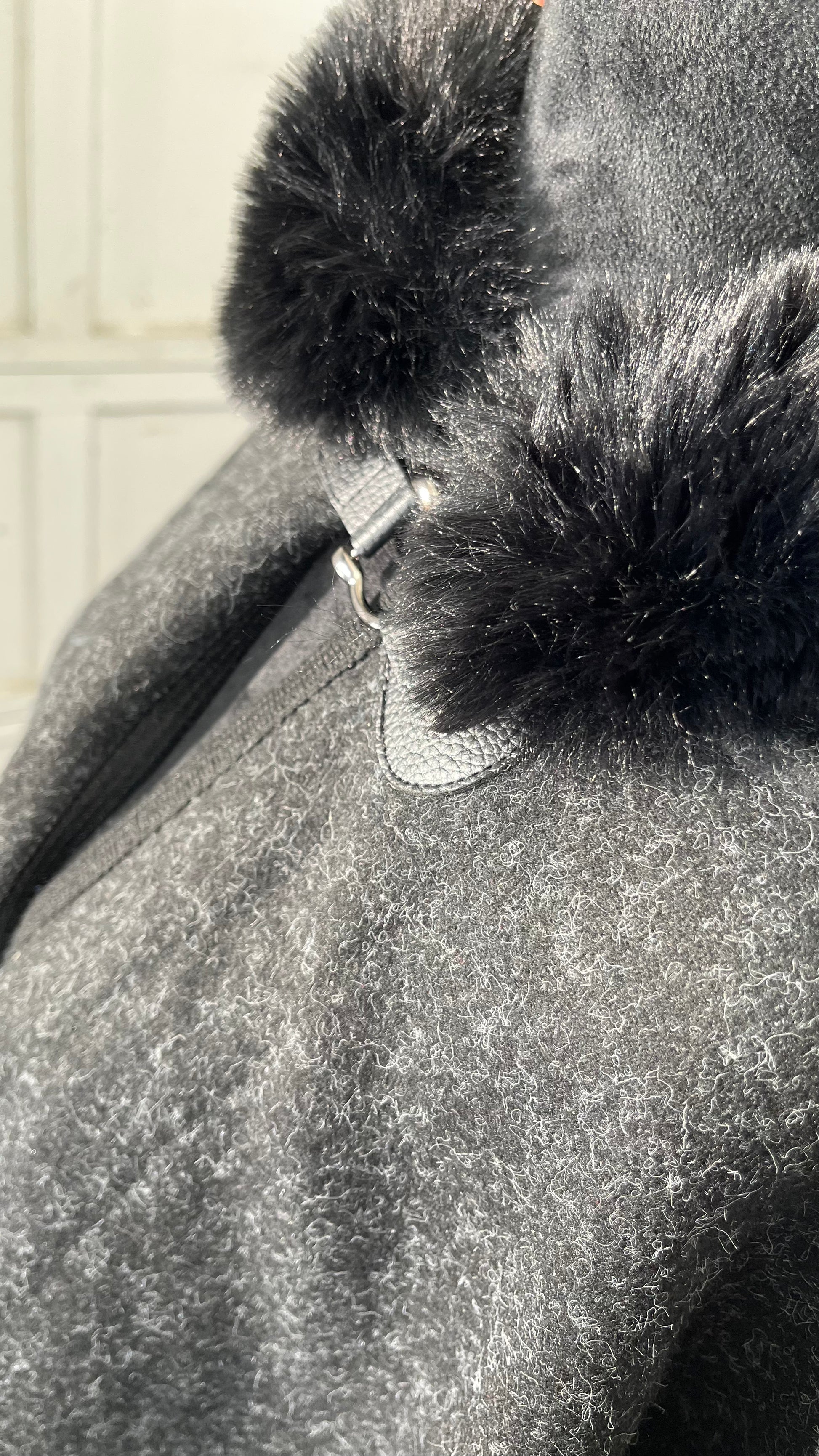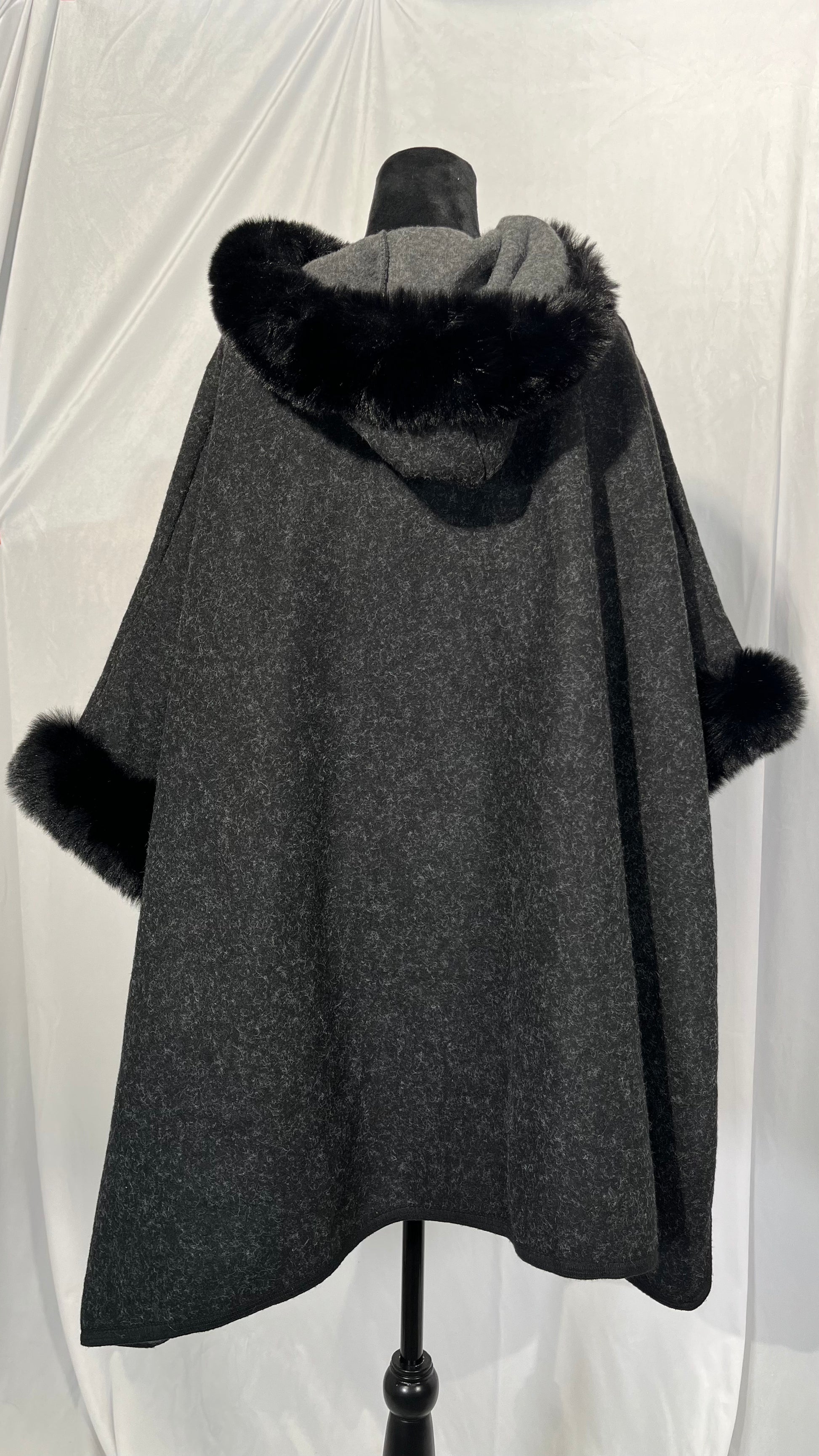 Ladies Faux Fur Cape Womens 3/4 Sleeves Fur Faux Trim Cape Poncho Cardigan Cloak Poncho Fur Shawl Wrap Stole Fashion Oversize Size No