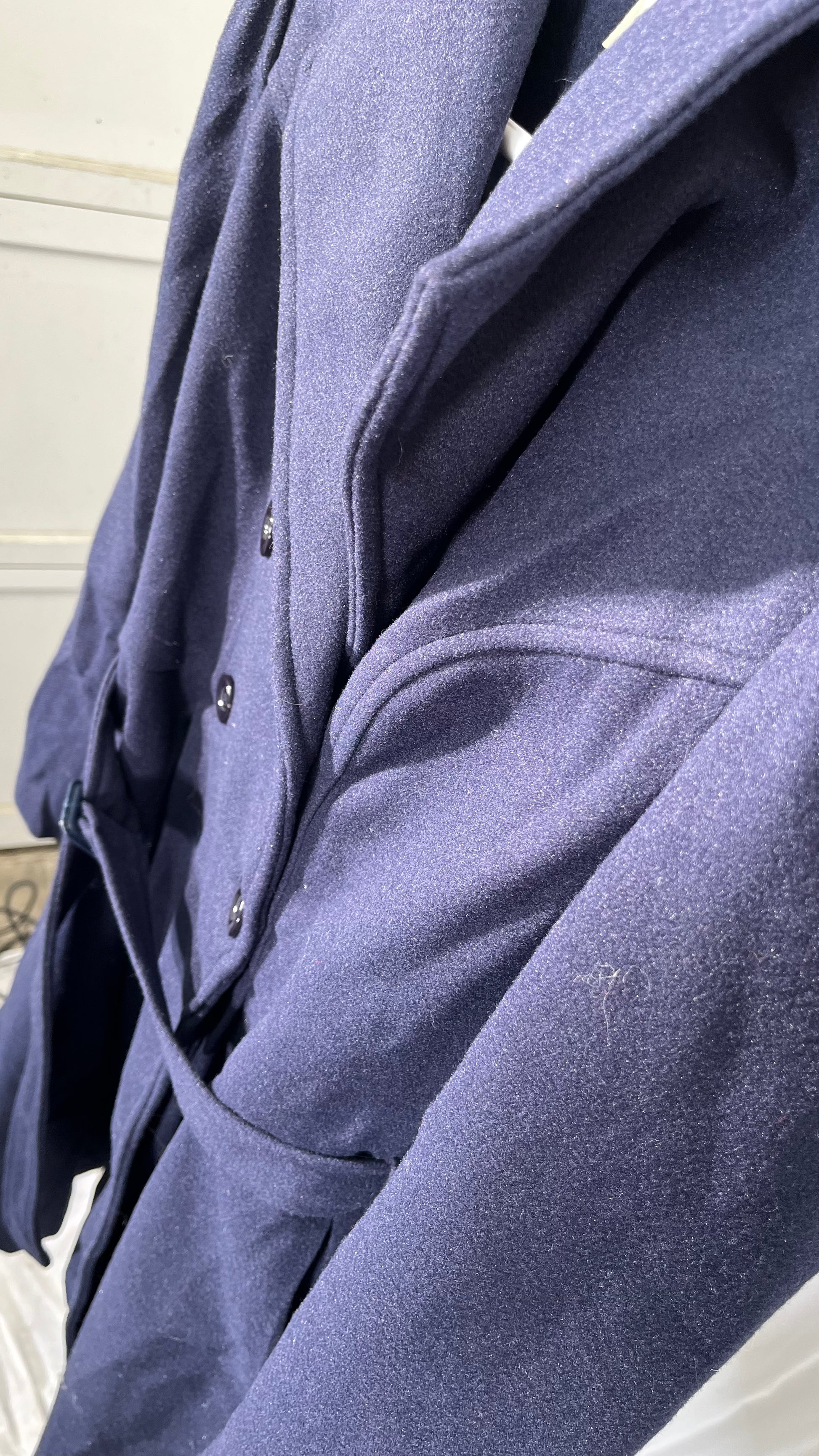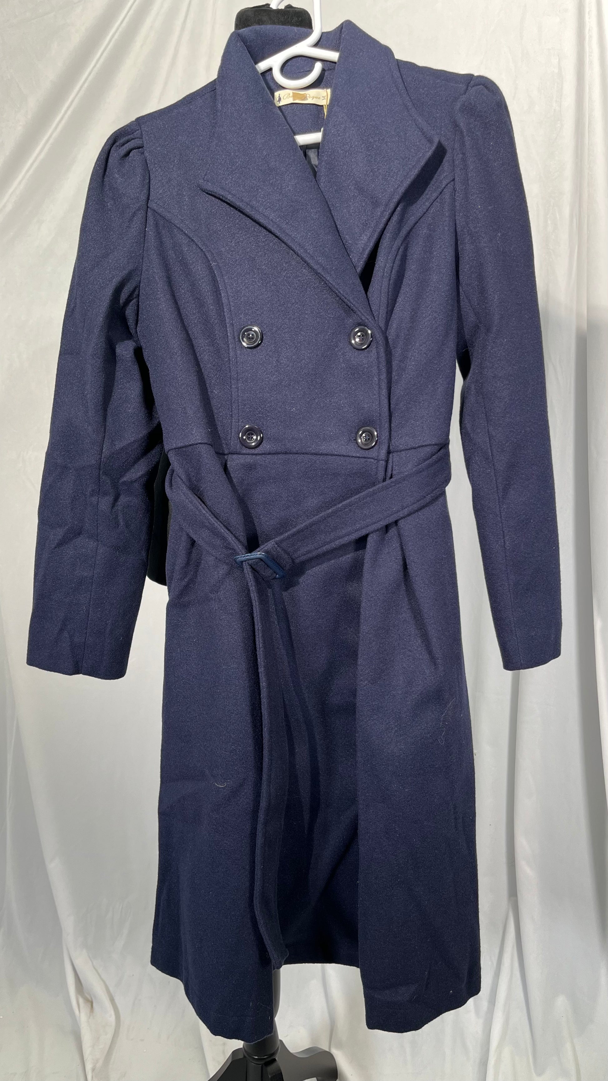 Adhdyuud Women's Woolen Long Trench Coat Winter Casual Lapel Double Breasted Wool Jackets Navy Blue M size M