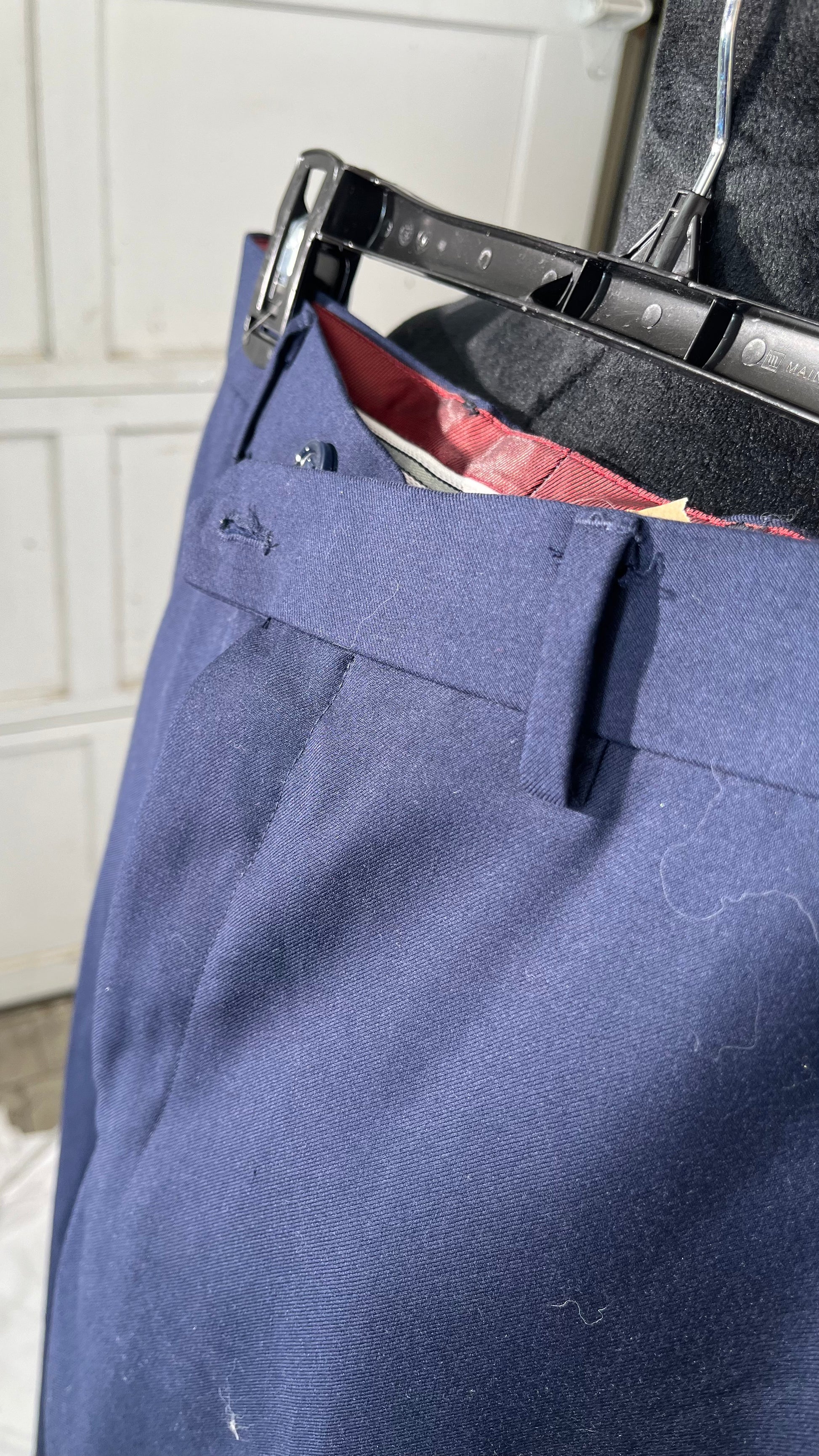 - DETAILS: Features a zip fly, hook and bar front closure with secondary interior button closure, front slant pockets, and button-through back pockets. Interior curtain waistband for a tailored look.