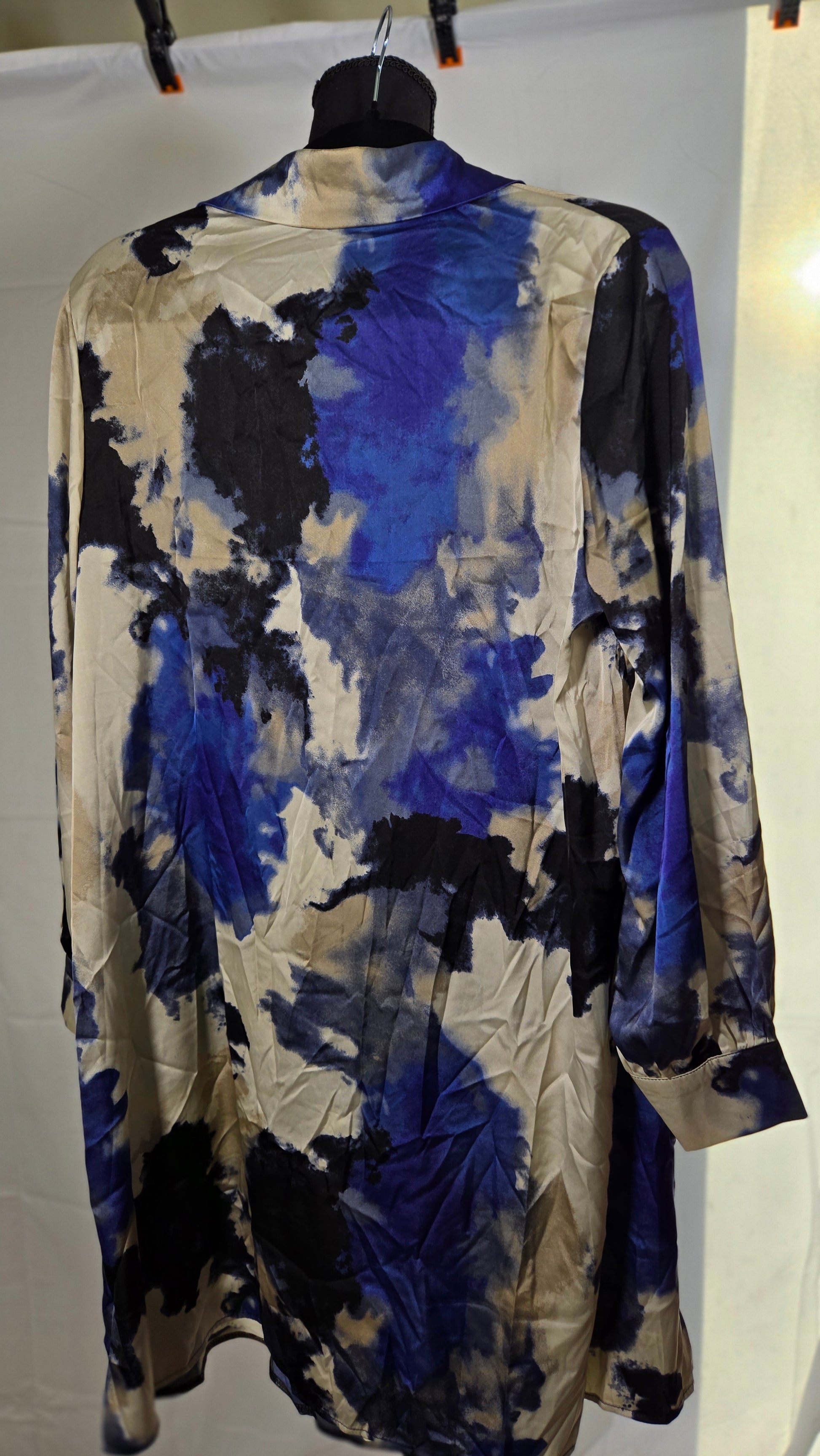SHEIN Plus Size Button Front Long Sleeve Tie-Dye Mini Shirt Dress For Casual Vacation size L