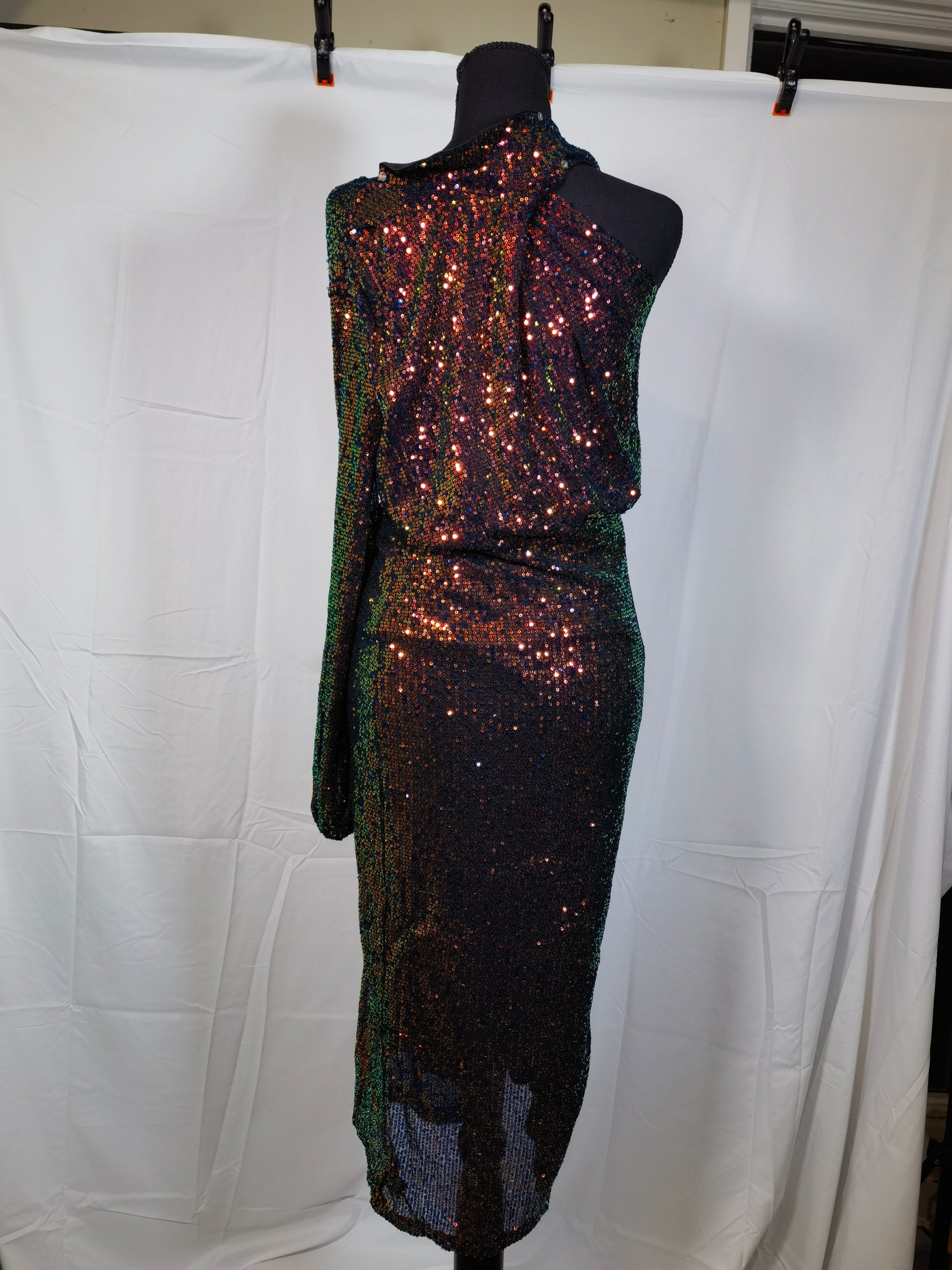Women's 2023 Sexy One Shoulder Long Sleeve Sequin Cocktail Dress Split Bodycon Sparkly Glitter Club Party Midi Dresses Size No