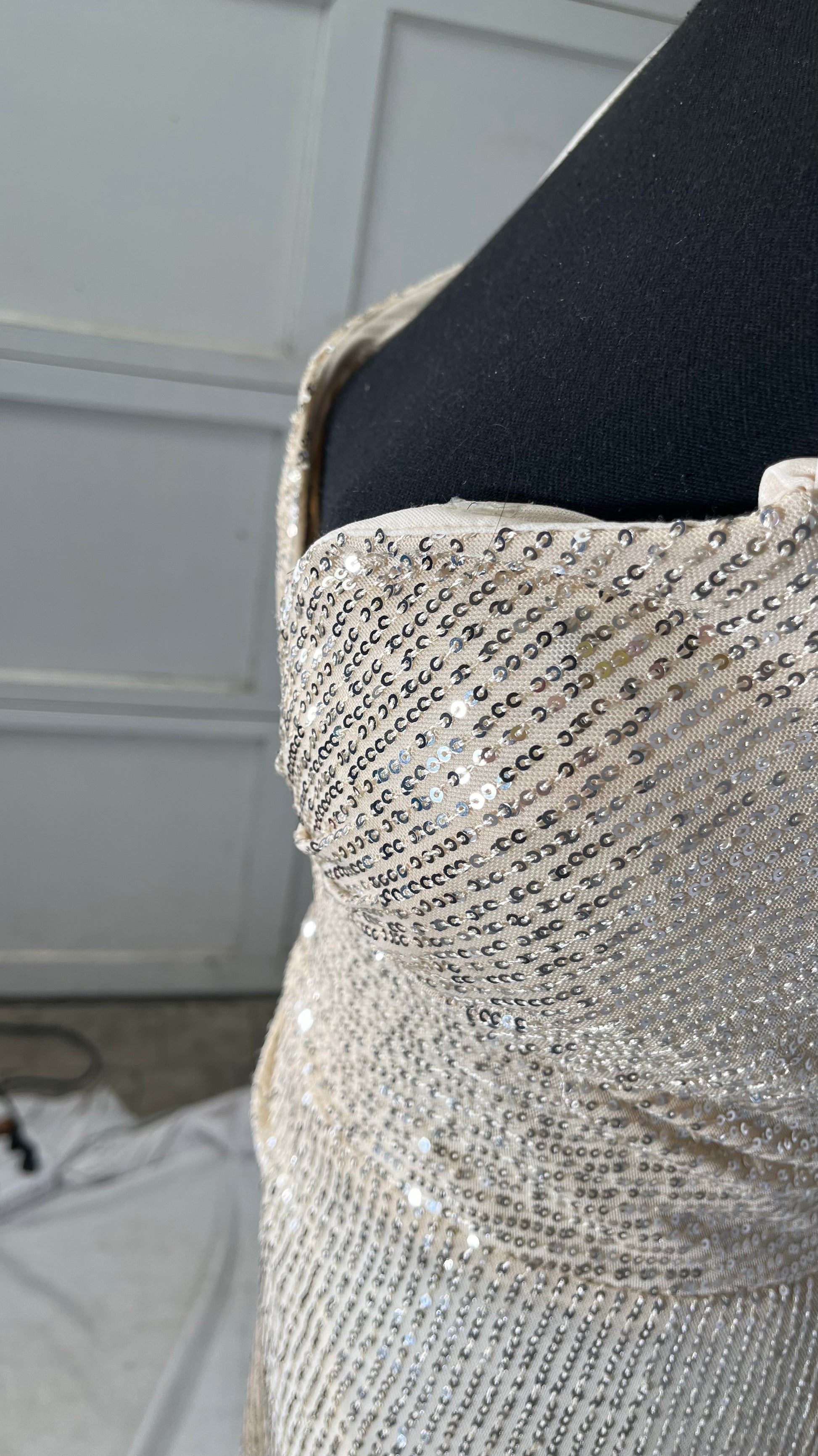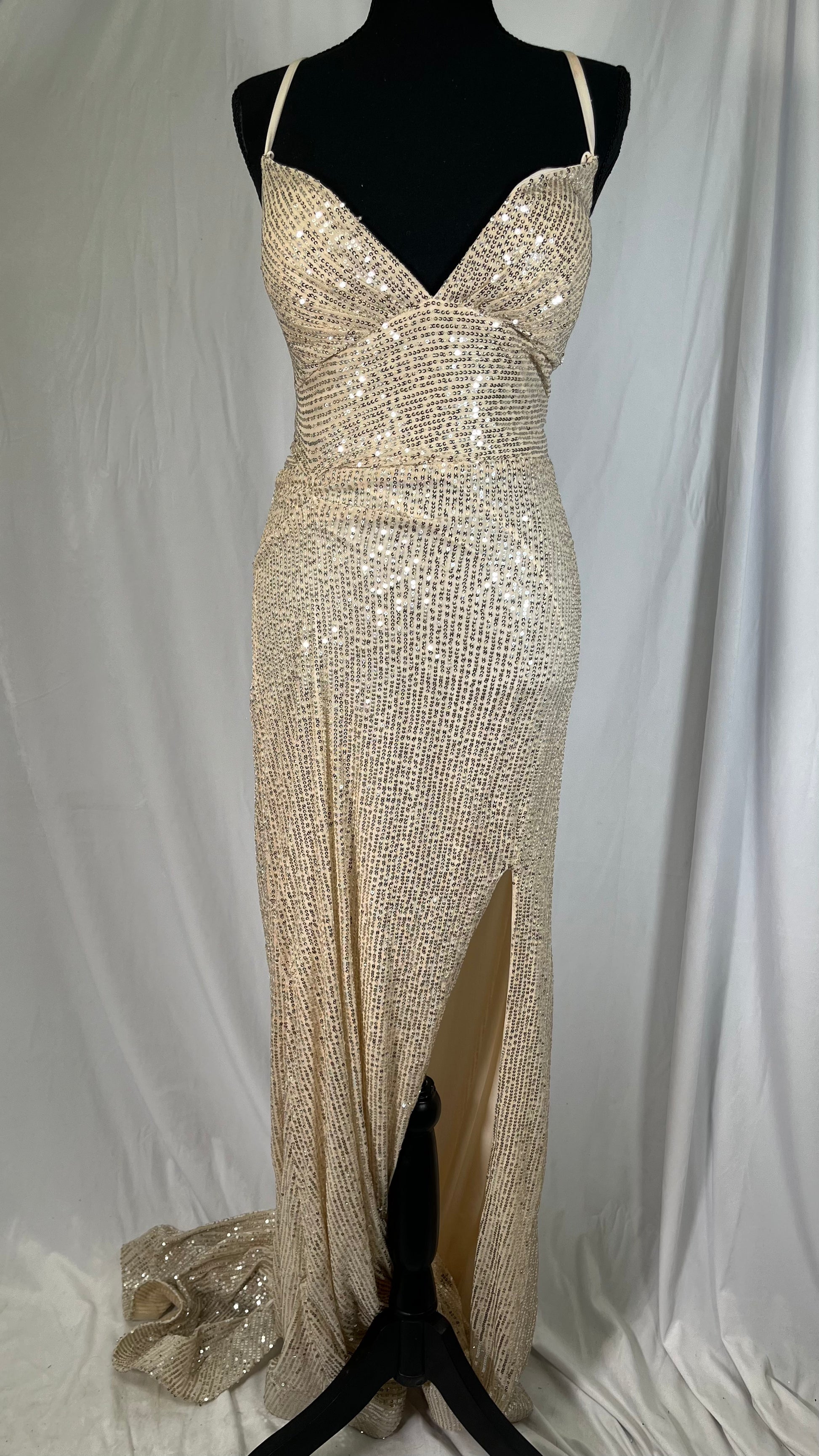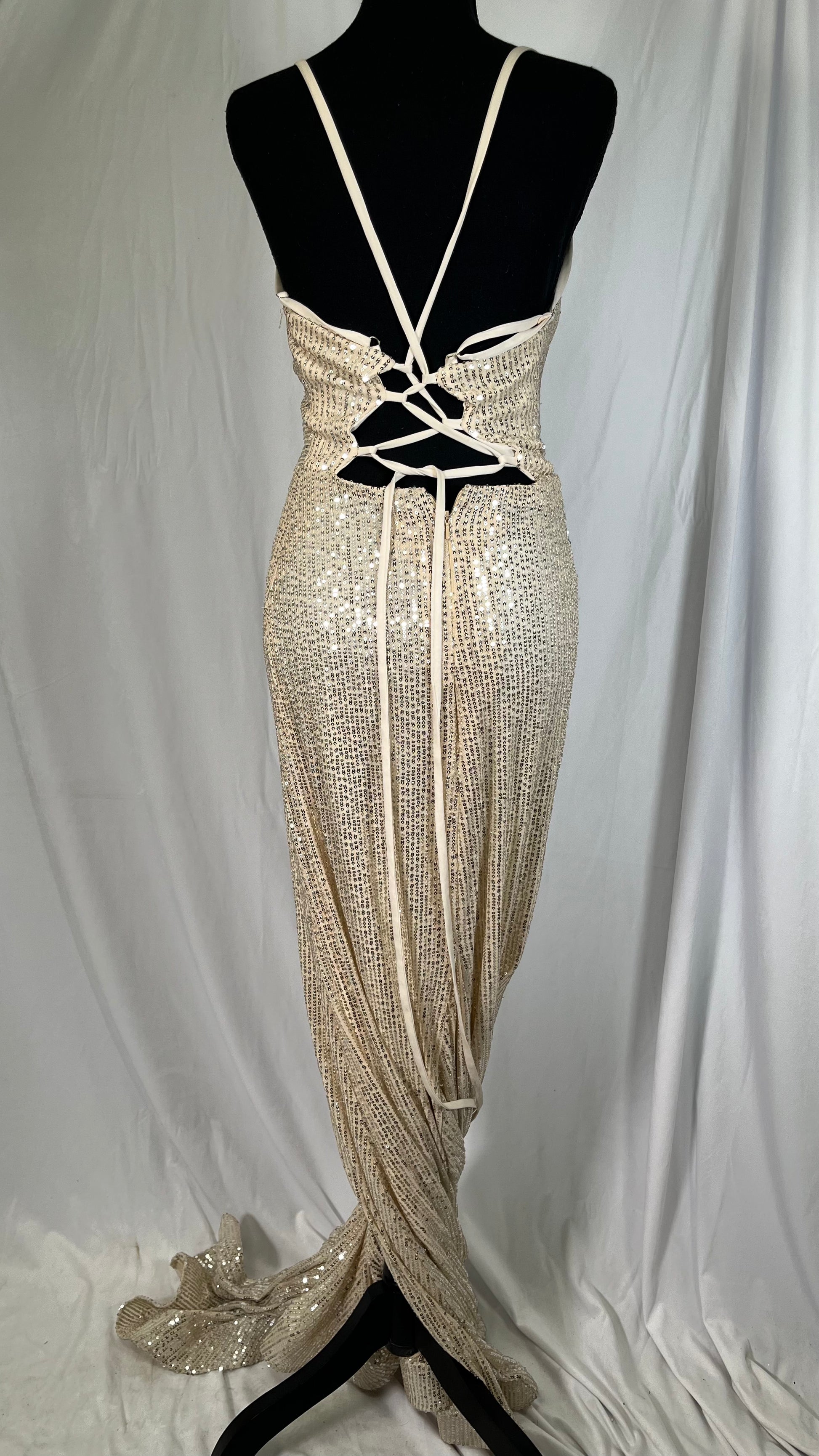 Women's Spaghetti Strap Satin Cowl Neck Corset Dress Fishbone High Slit Sexy Prom Silk Maxi Party Bustier DressSize 8