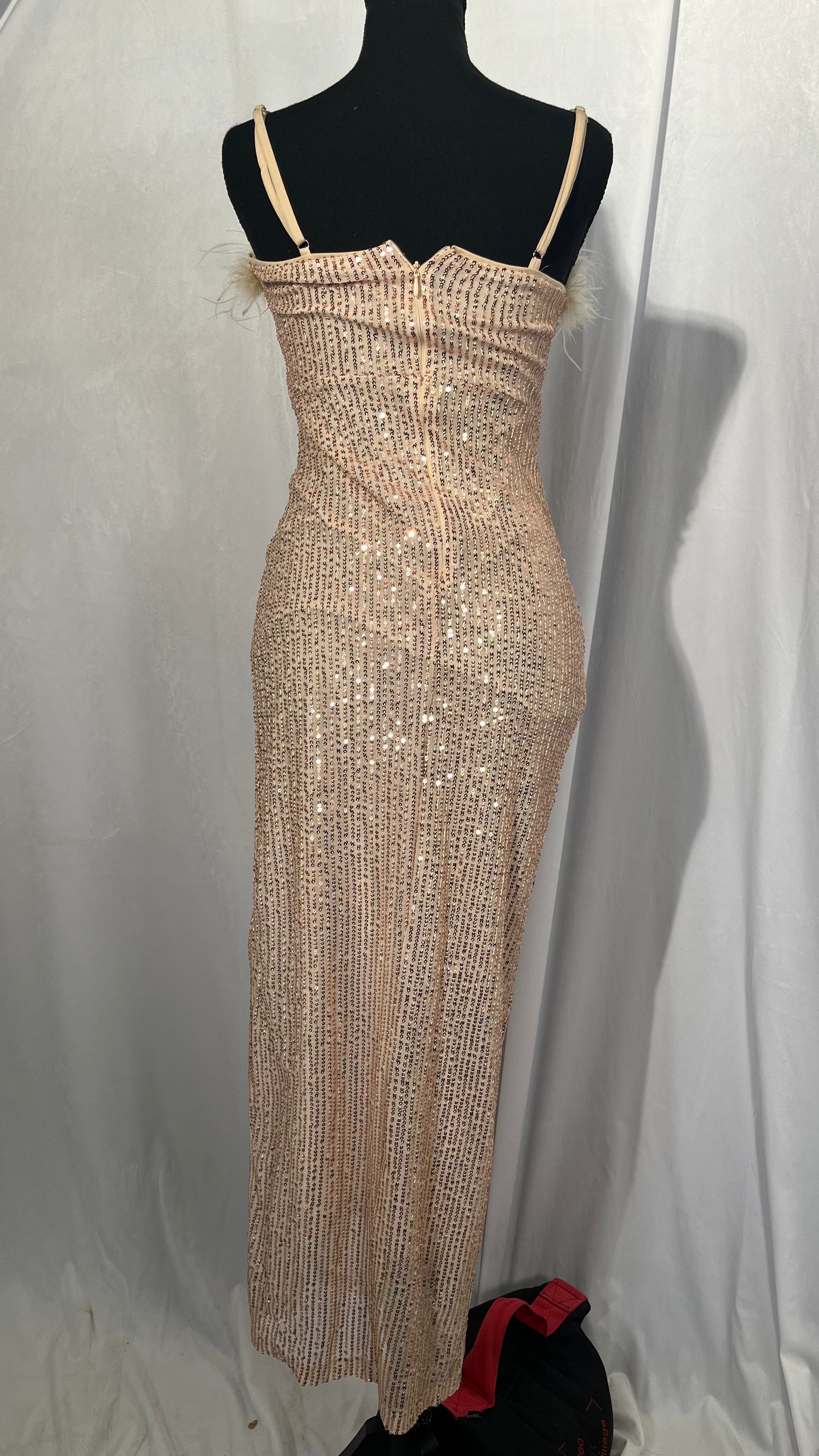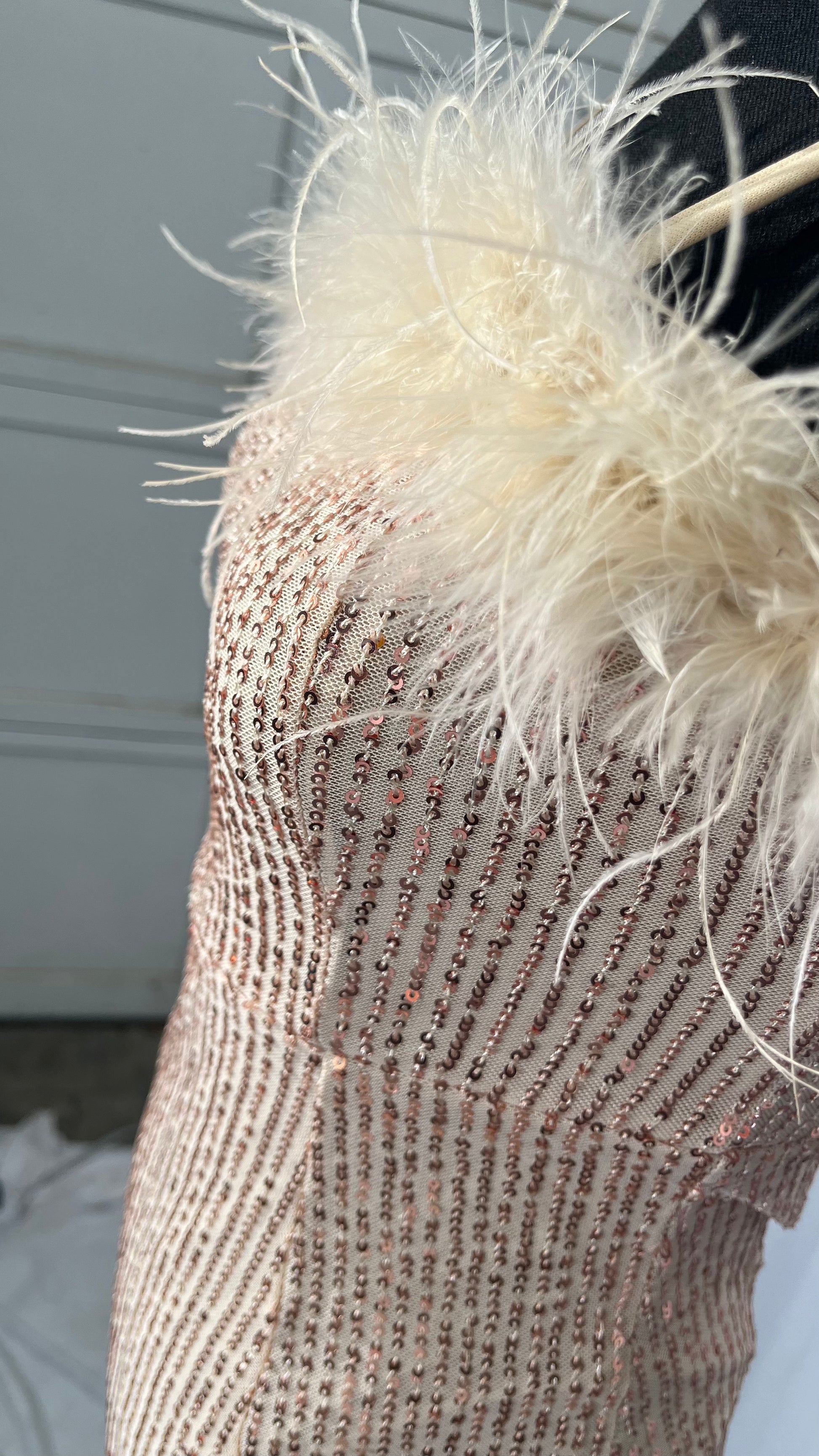 RanRui Women's Formal Dresses Tube top Feather Sequin Slim Dress Long Dress Evening Dress Size XS