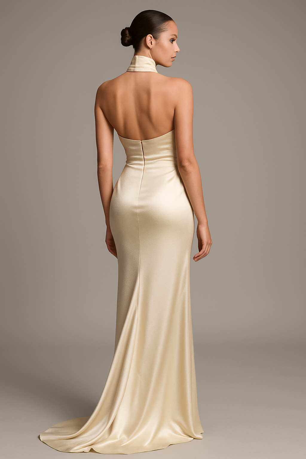 - [Features]: Strapless Mermaid Gown,Halter,Pleated Satin,Side Slit,Ruched,Long,Lace-Up Back,Floor Length,Fully Lined,Built-In Bra,Lace-Up Back,With A Breathtaking Side Slit,Is Designed To Enhance Your Beauty At Any Event.