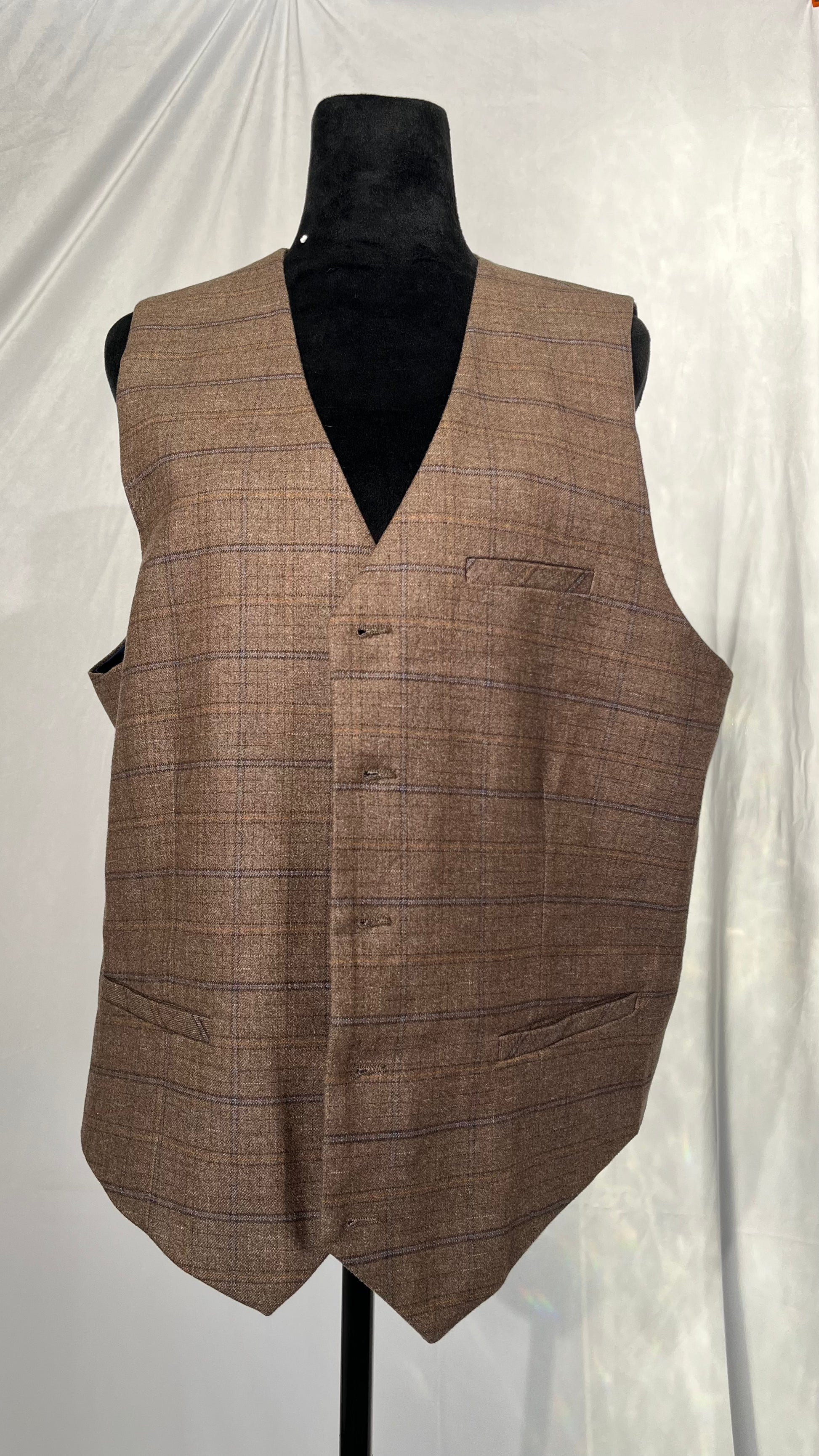 Mens Suit Vests Brown Black Waistcoat Vest Man Plaid Steampunk Jacket Tweed V-Neck Slim Fit Gilet Wedding Clothing Size L