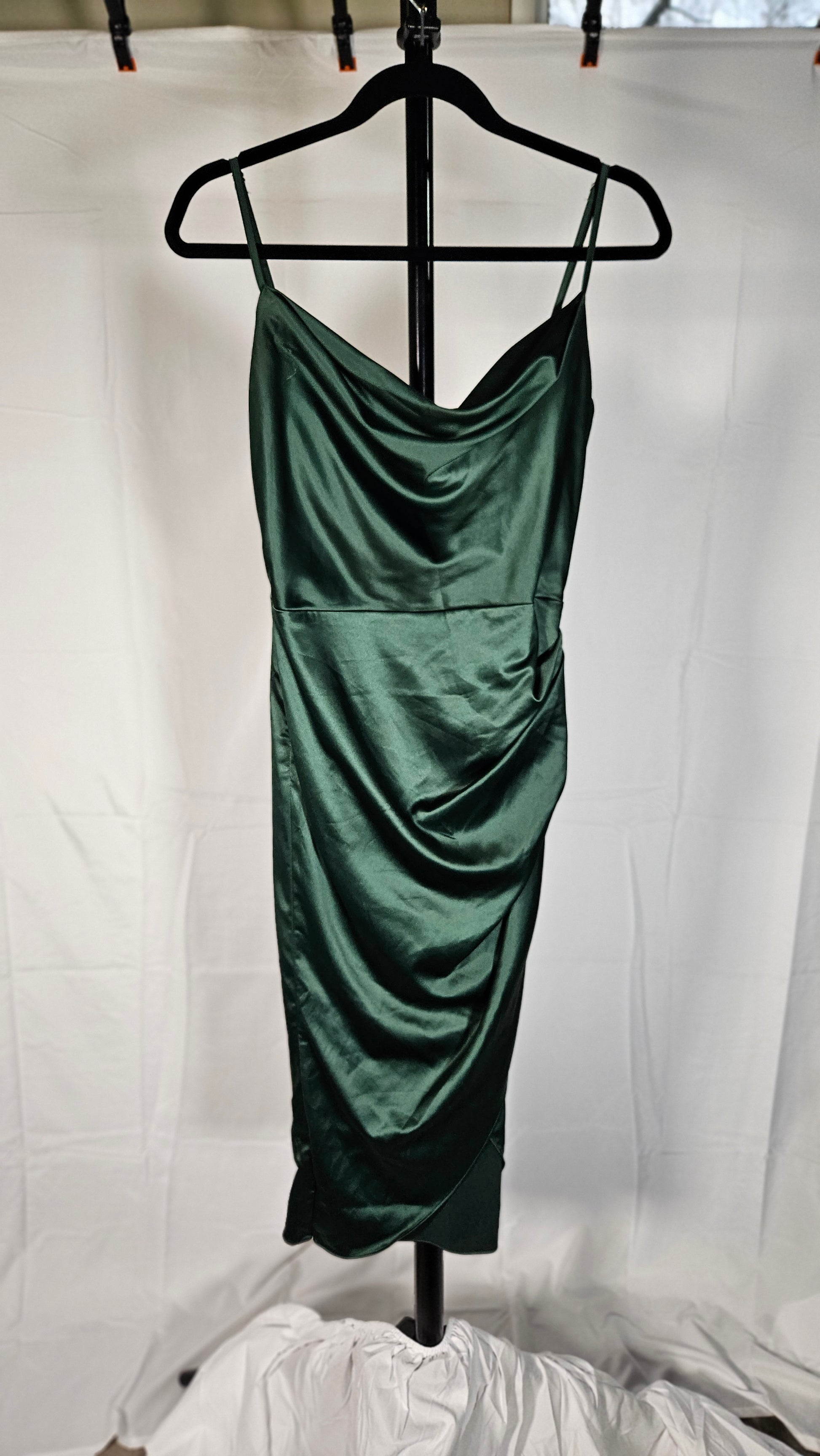Spaghetti Strap Cowl Neck Pleated Waist Dress Size M