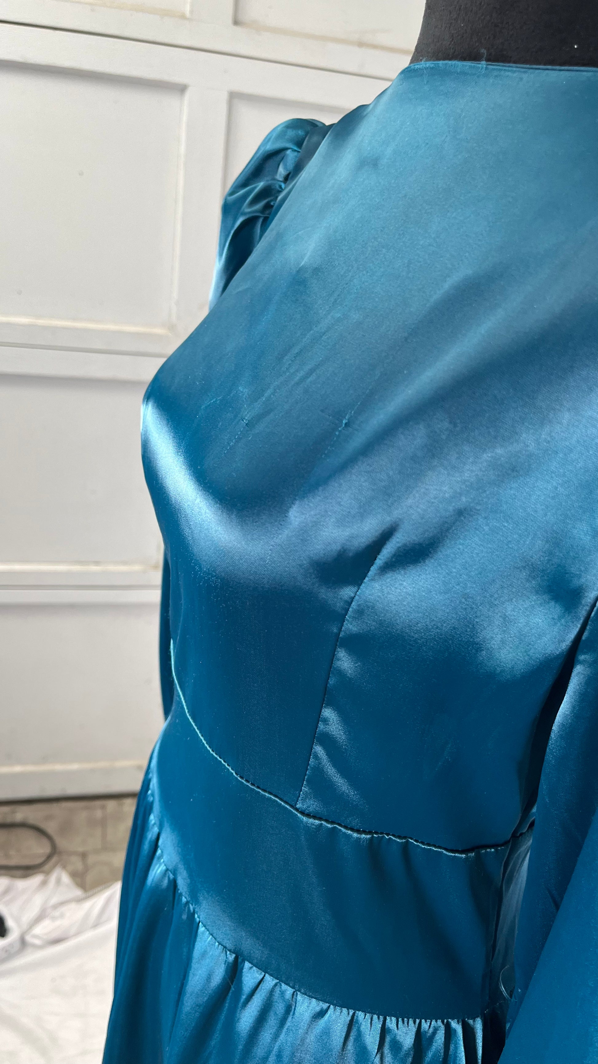 - Smooth Satin Fabric Not See Through/ Relaxed Fit Cut Suitable For Most Figures / Tie Waist Front / Wrap Design / Elastic Waist / Keyhole Tie Zipper On The Back Of The Neck