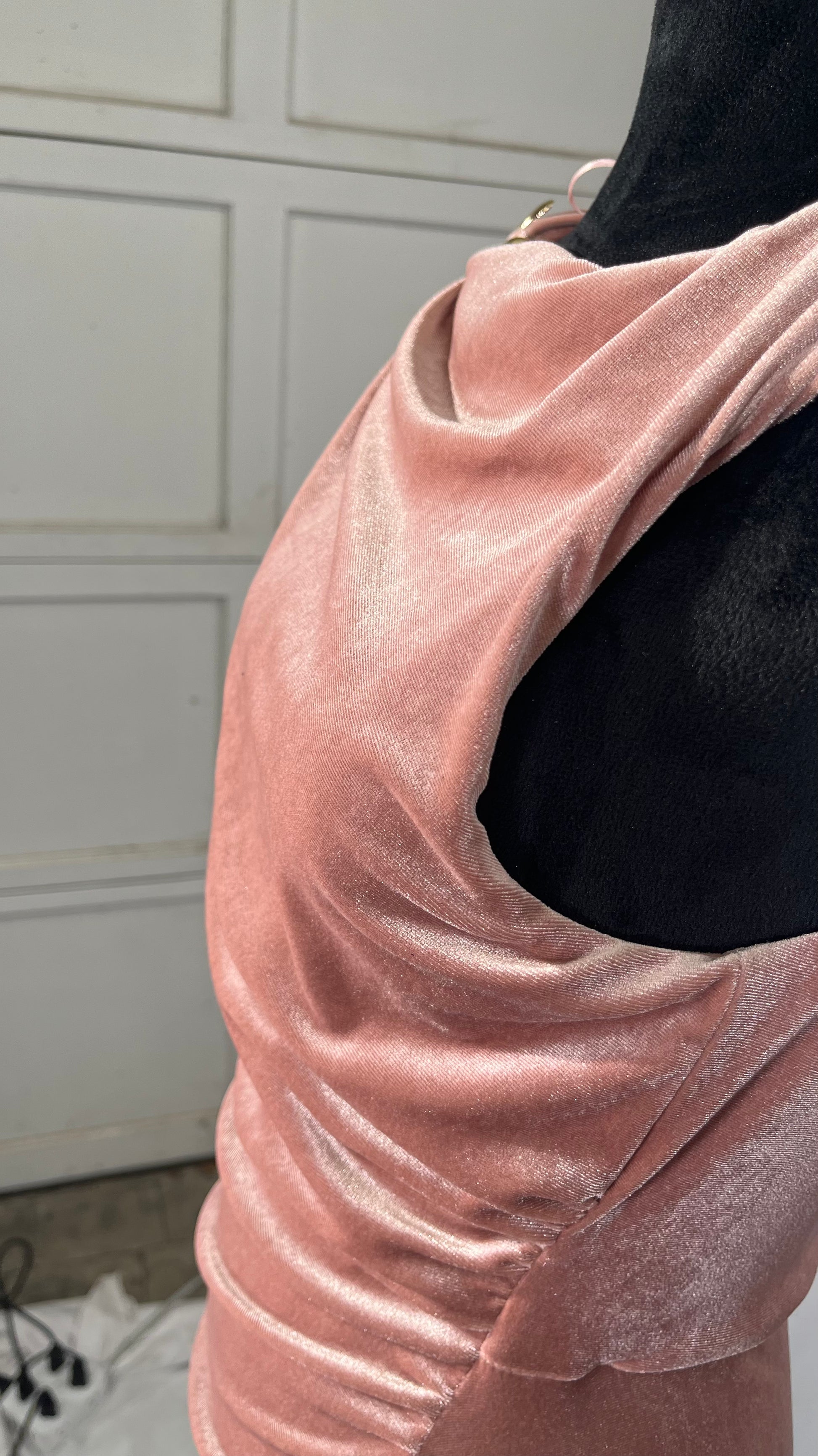 - One-Shoulder Asymmetrical Design: Features a sophisticated wrap-over silk drape with a long sleeve, adding an elegant and modern touch to your look.