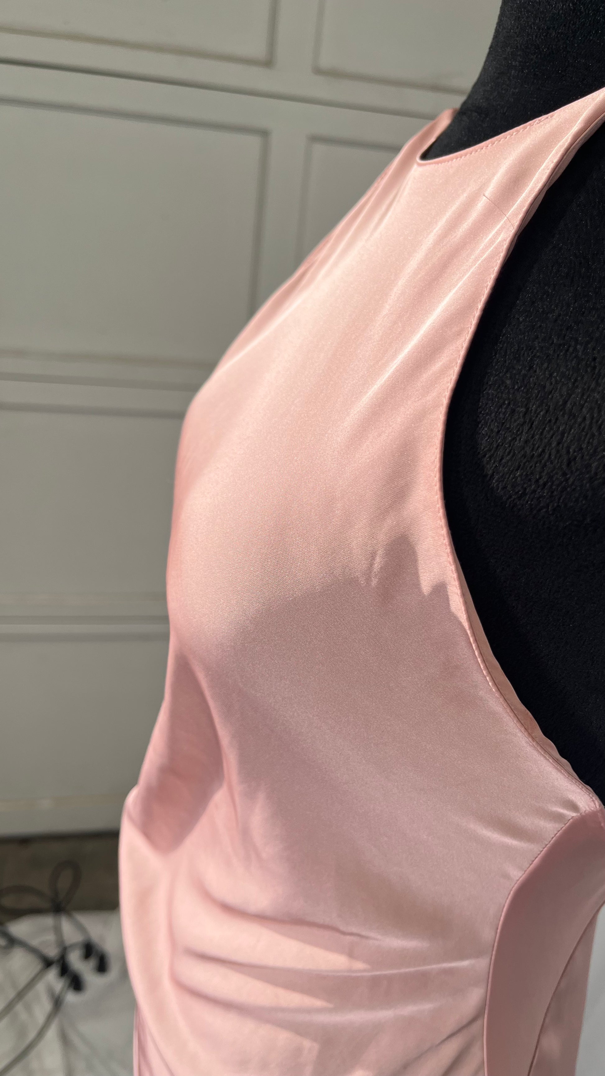 Women's Summer Satin Dress Layered Ruched Guest Dresses Ruffle Dress Low Cut Sun Dress Beige Size S