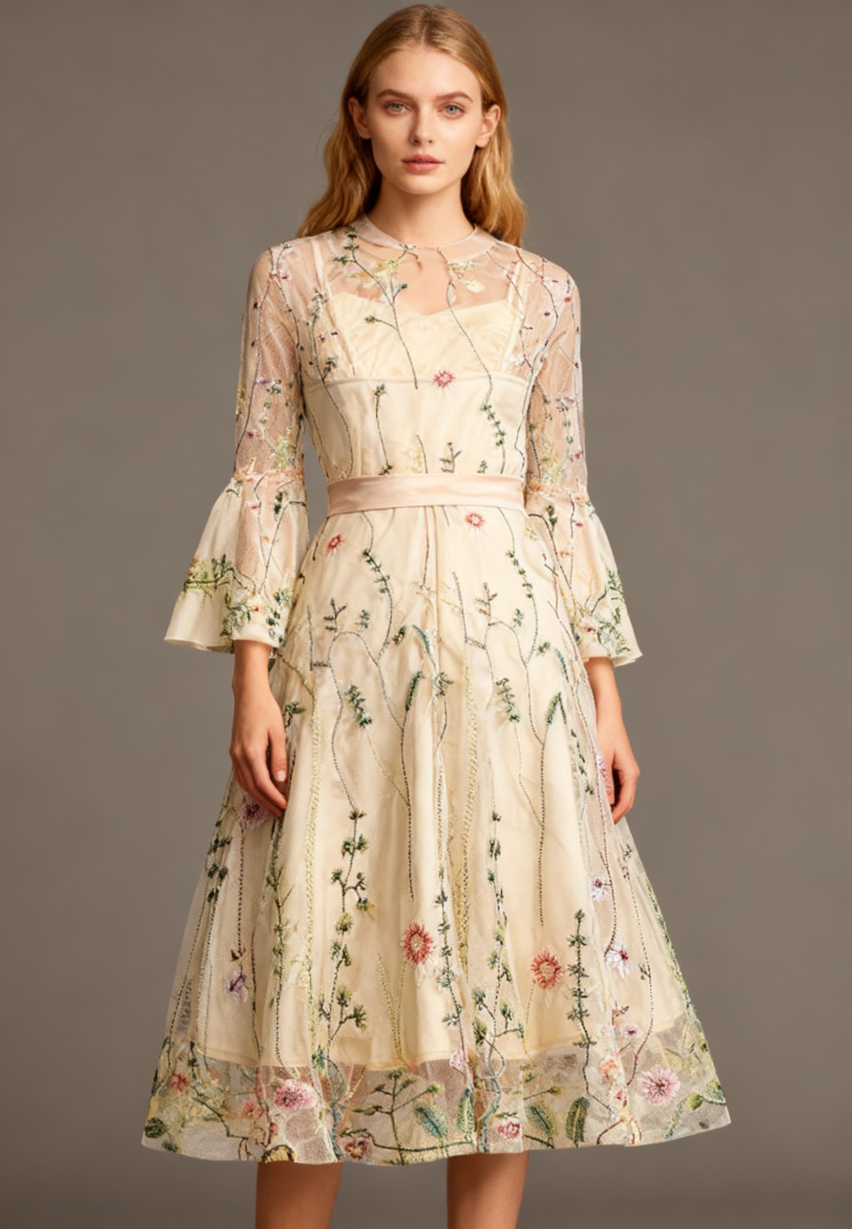 - Vintage embroidered floral dress for women flower embroidered dress tulle embroidery floral dress, 2 piece dress for women summer, women floral embroidered dress for women formal, bow tie neck embroidered 3 4 sleeve dress for women wedding guest, spring garden midi slim fit flare wedding prom dress three quarters sleeve. Floral embroidery tulle dress vintage floral midi dress, floral embroidery tulle formal dresses wedding guest mesh floral embroidery dress for women mesh sleeve dress