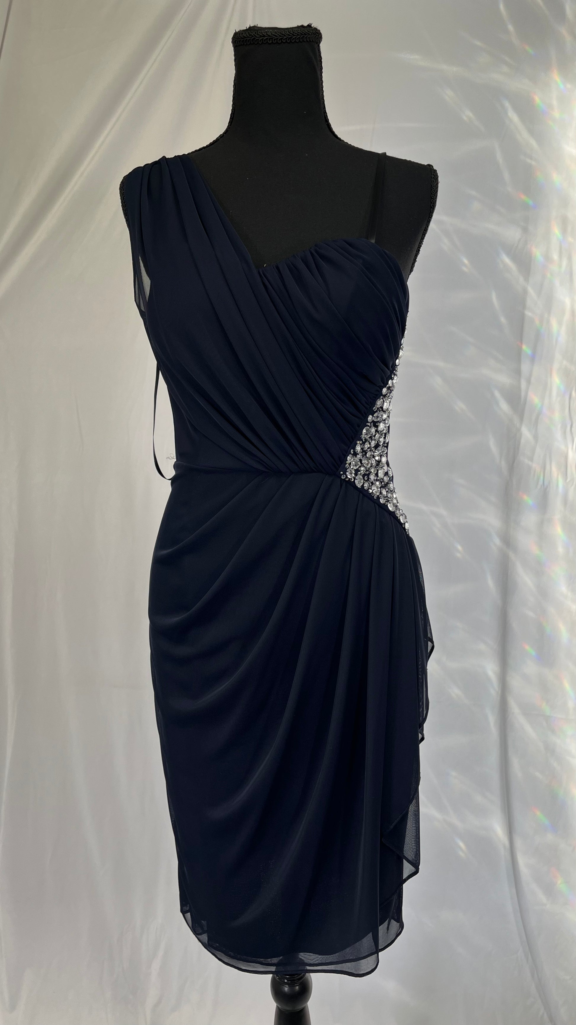 One Shoulder Dress with Rhinestone Knot Detail Size 6