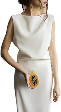 - Features:This sheath/column open back bridal gown is an excellent choice for wedding receptions. The scoop neck design is elegant and generous, Wearing this dress, you will shine with charming brilliance at the wedding reception and become the focus of everyone's attention.