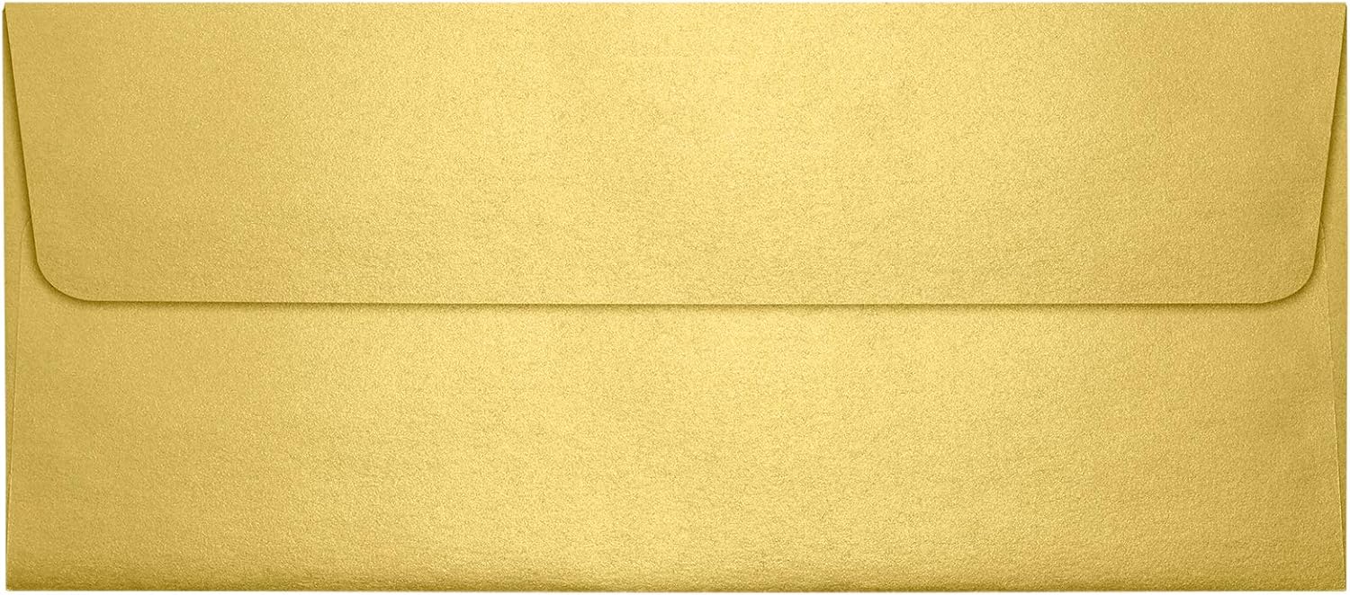 LUXPaper #10 Business Envelopes | Peel & Press | 4 1/8" x 9 1/2" | Gold Metallic | 80lb. Text | 50 Qty