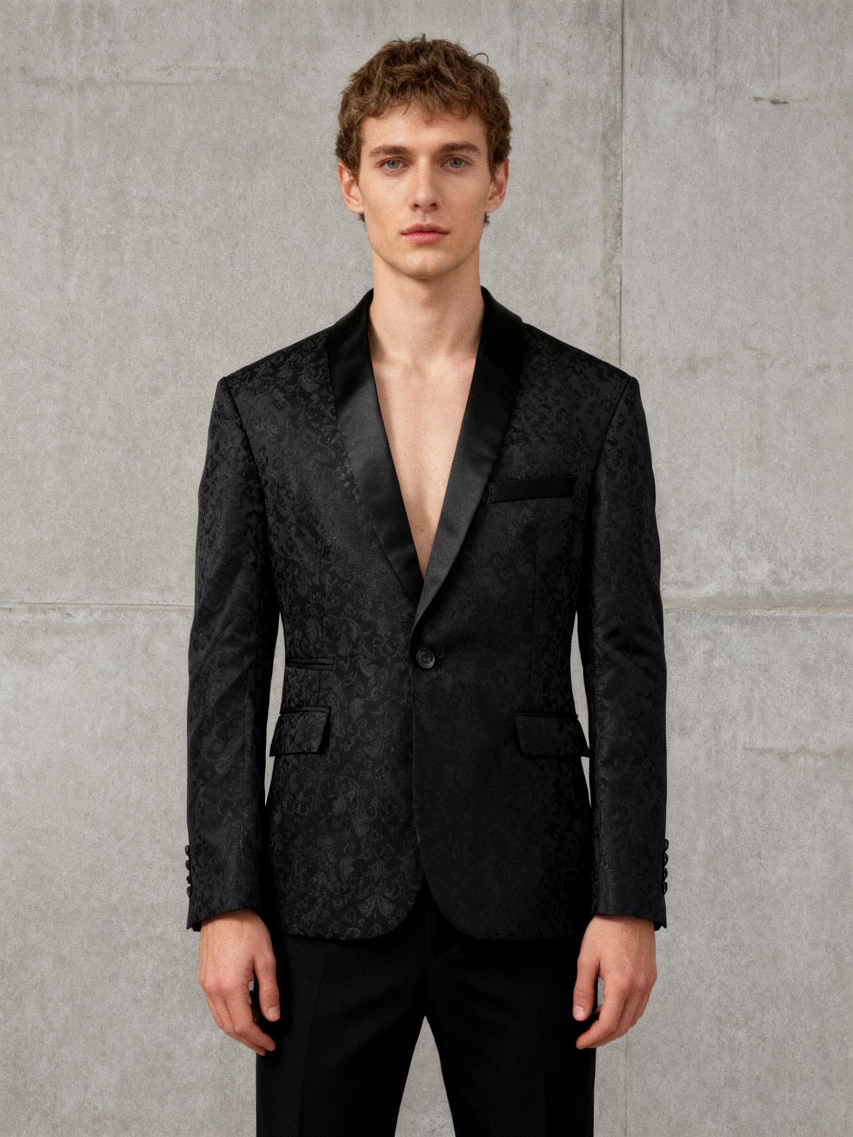 Men’s Black Subtle Pattern Blazer – Size L
