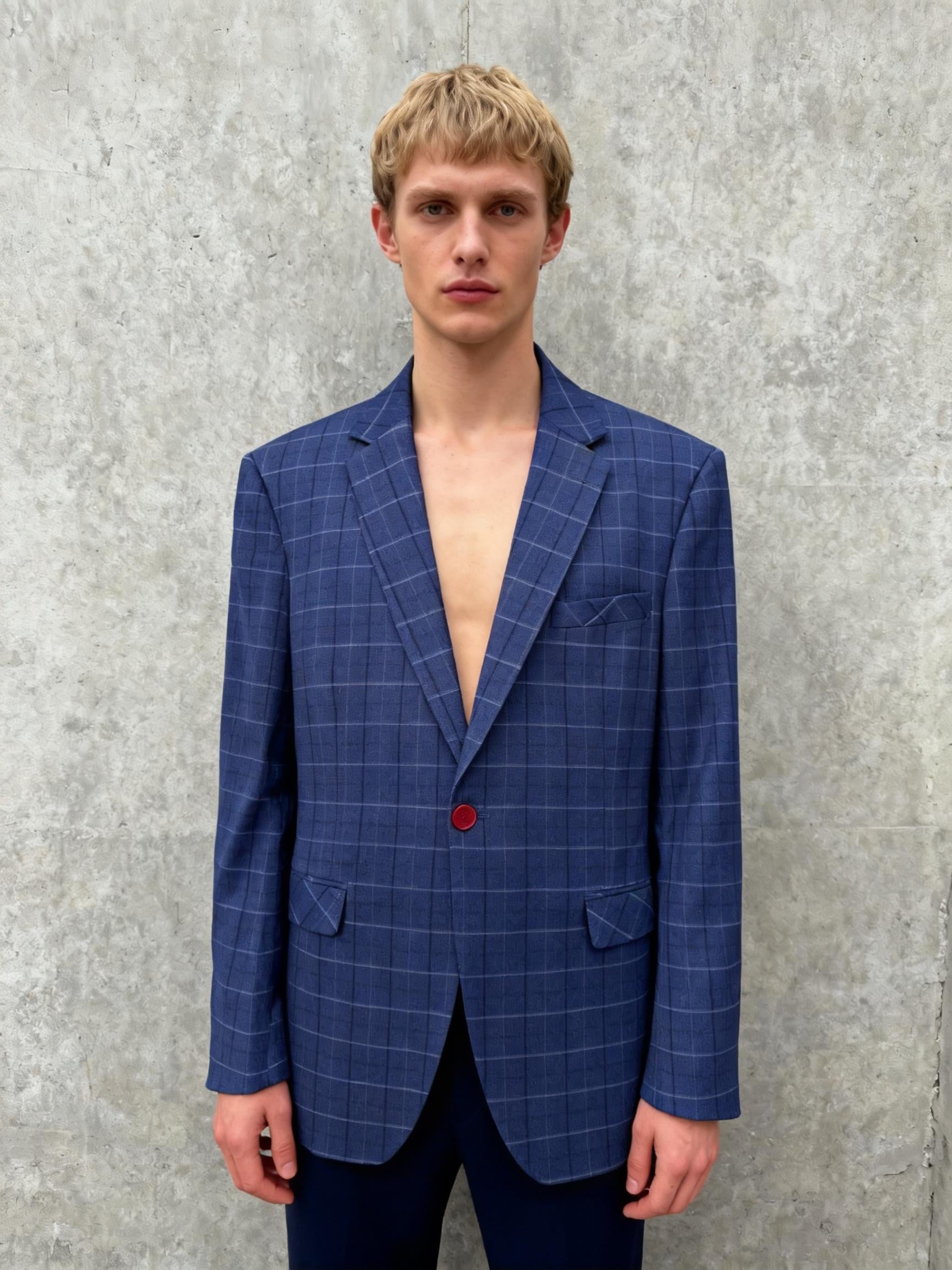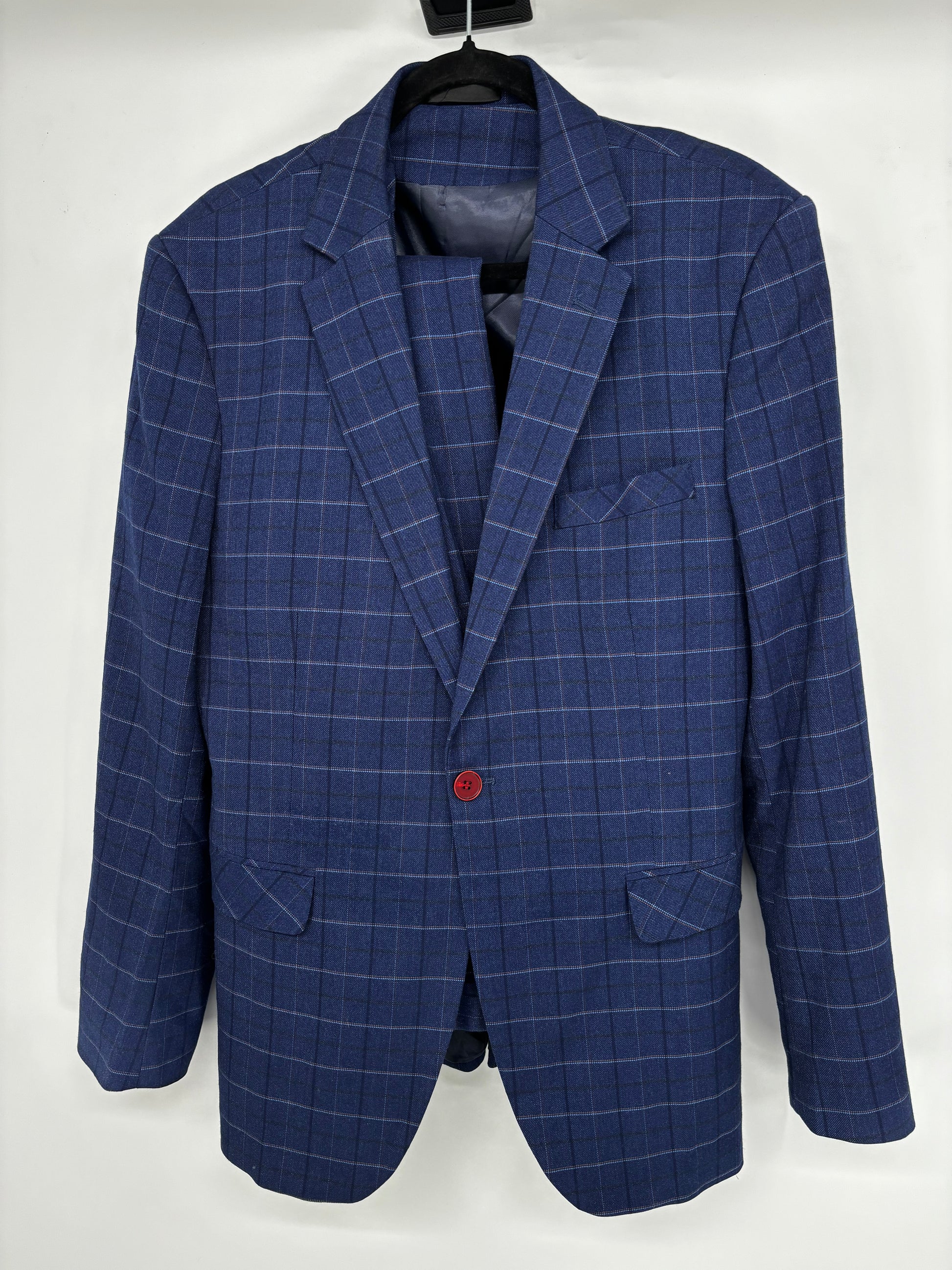 Men’s Blue Plaid Suit Set – Blazer & Pants, US Size 40