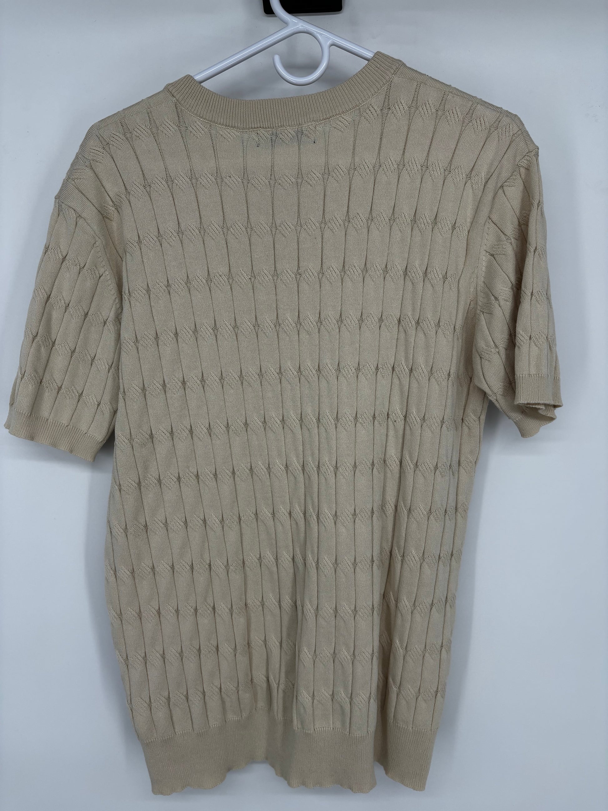 Men’s Light Brown Knit Short Sleeve Sweater – Estimated Size M