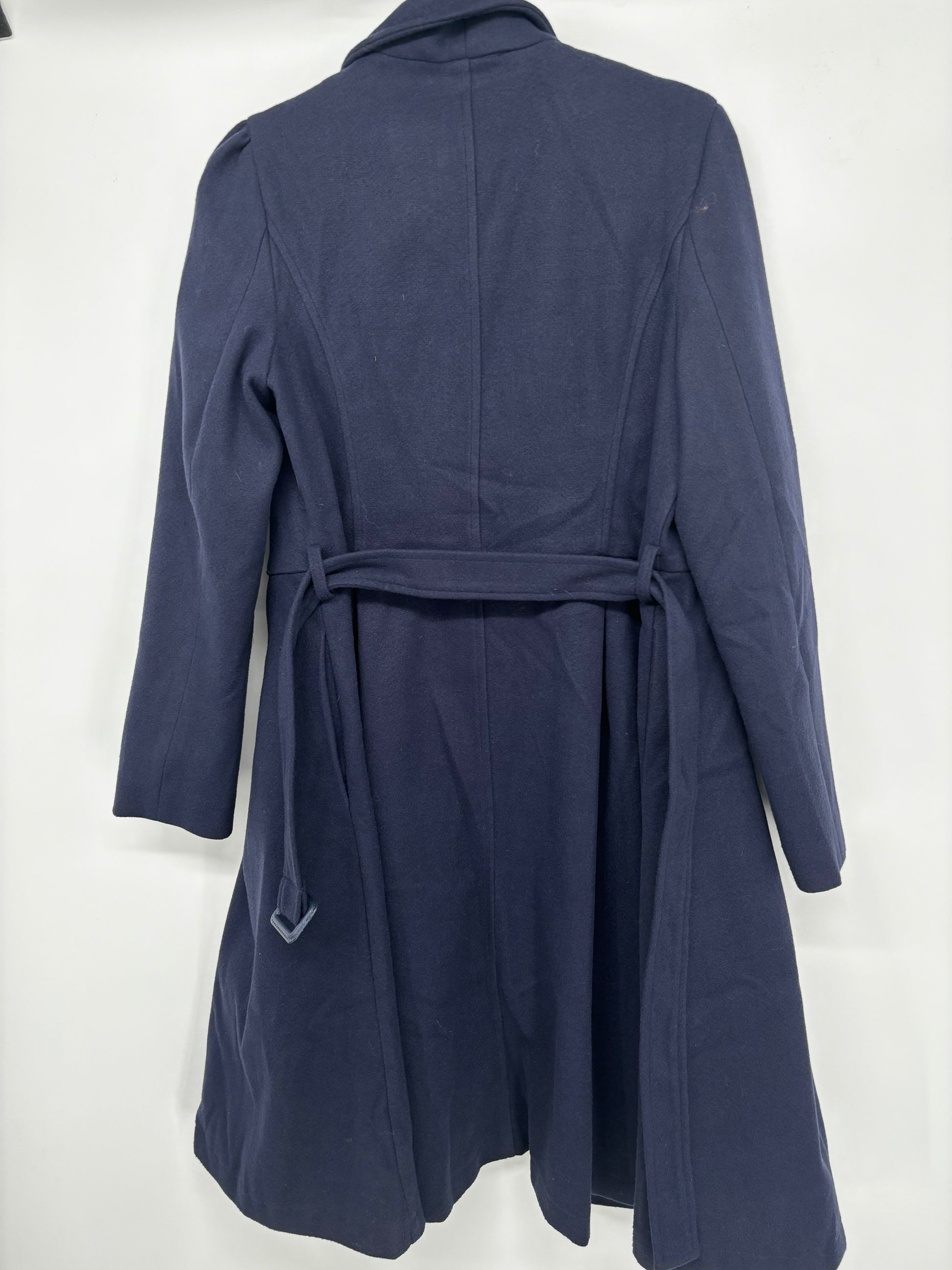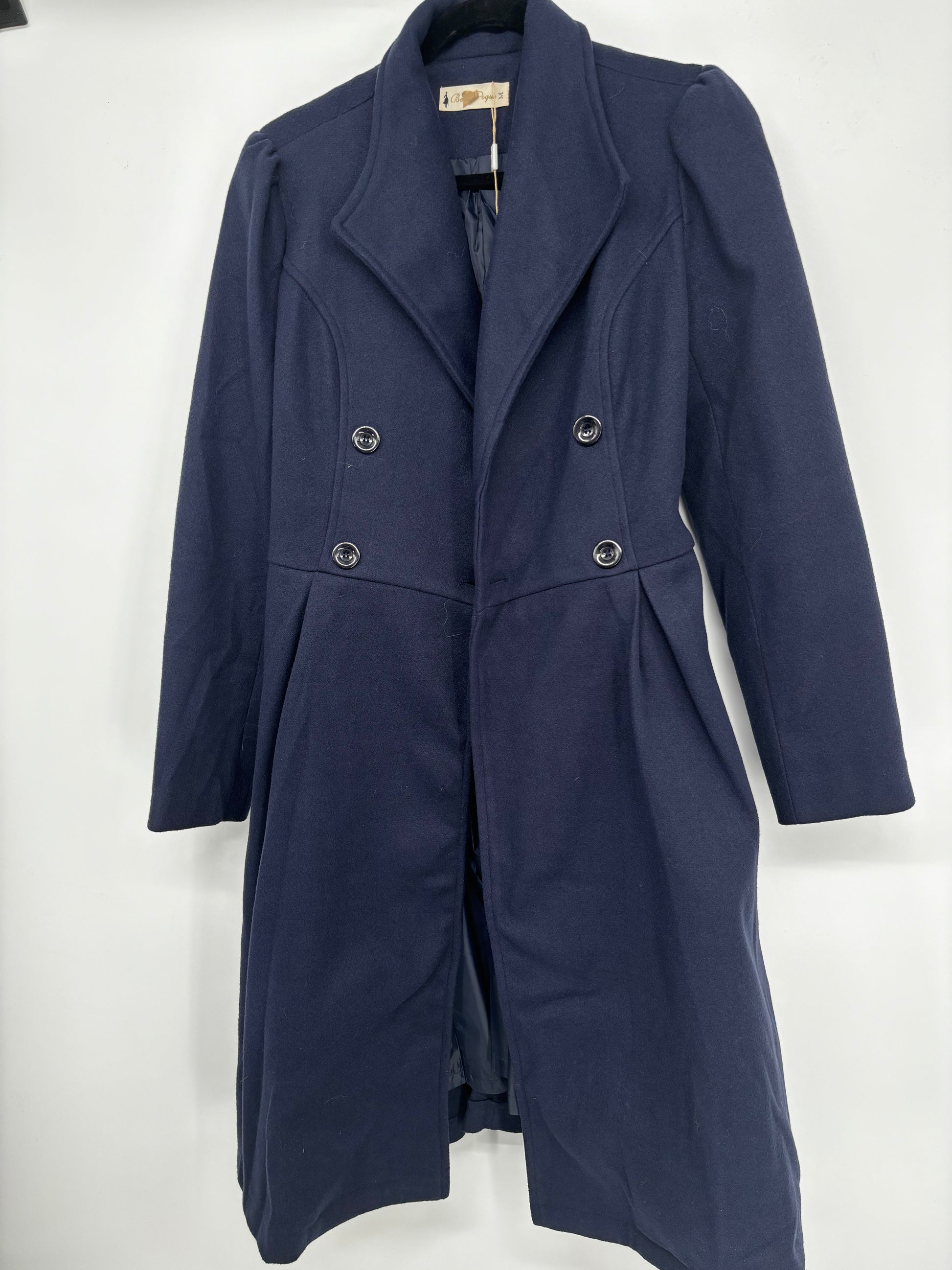 Men’s Navy Blue Double-Breasted Long Coat – Size M