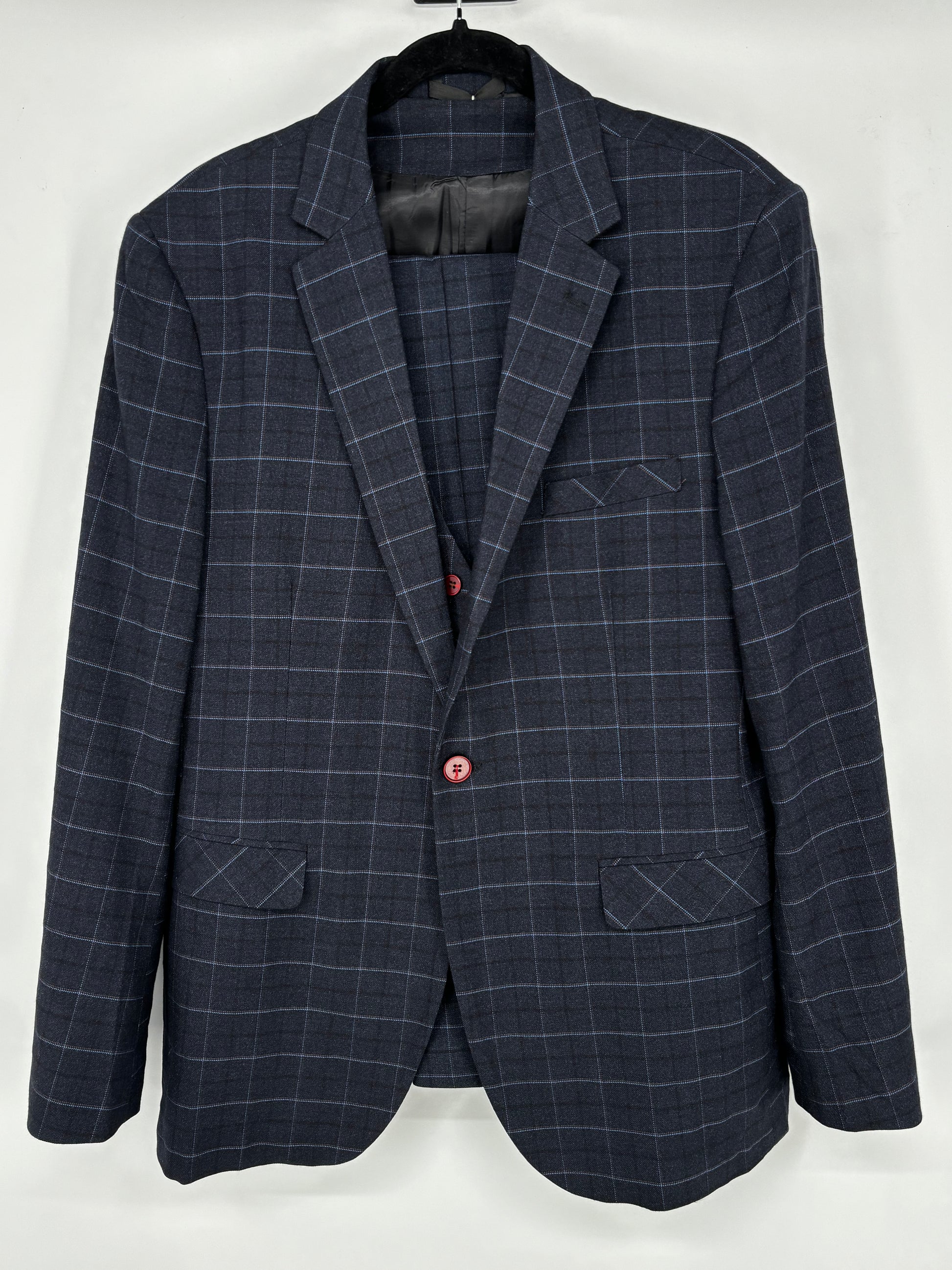 Men’s Navy Checkered Two-Piece Suit – Size 42