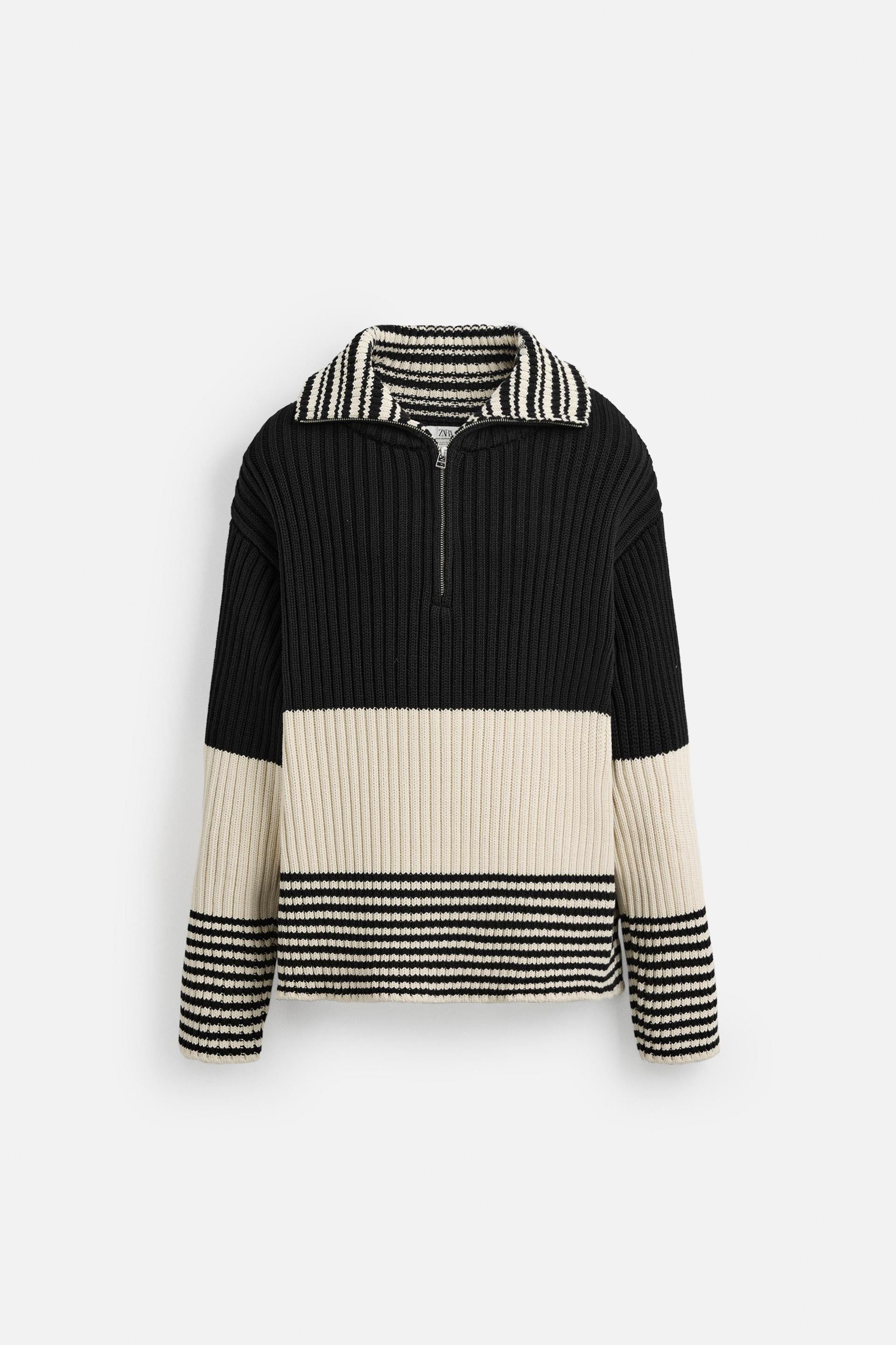LIMITED EDITION STRIPED ZIP NECK SWEATER Size S/M