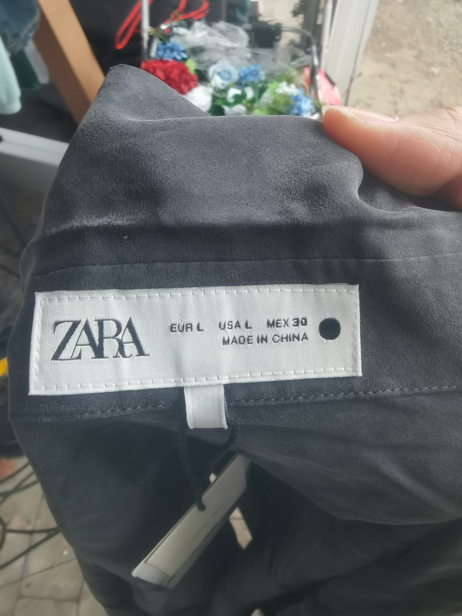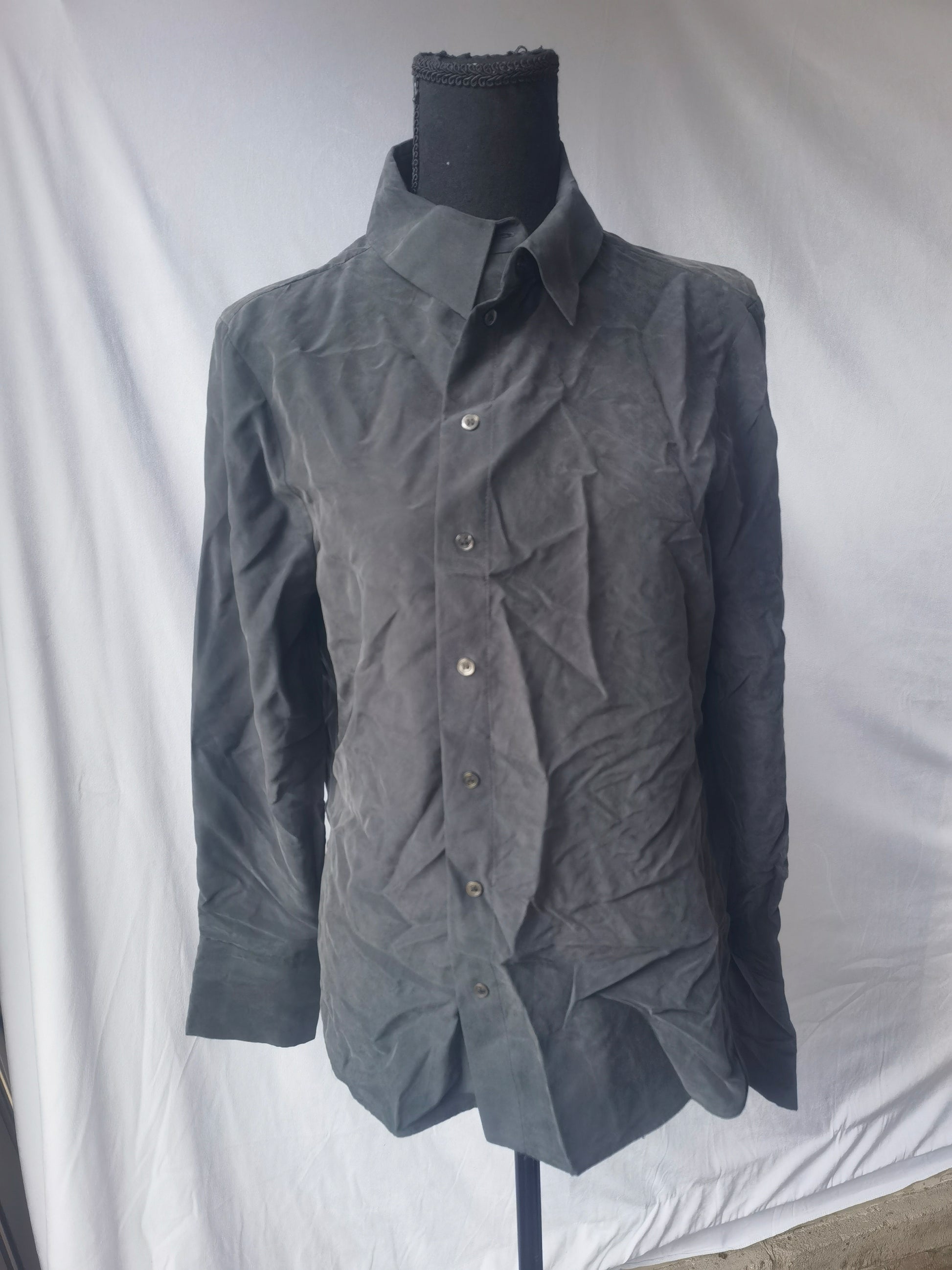 zara Men's dark grey drape long sleeve business CREASED-EFFECT SHIRT Size L
