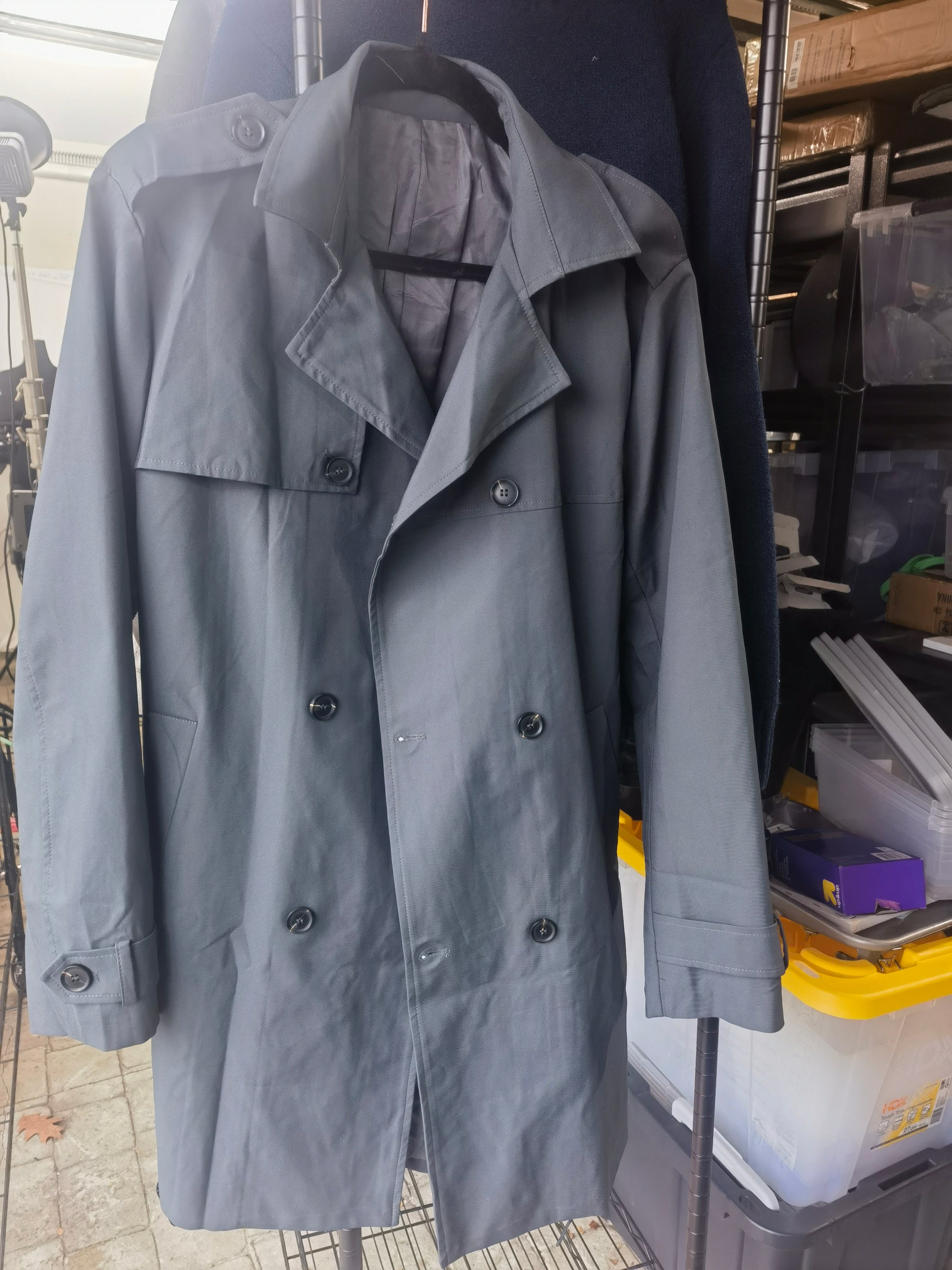 Pretifeel Mens Trench Coat Slim Fit Double Breasted Long Jacket Notched Lapel Belt Fall Windproof Coat Size Unavailable