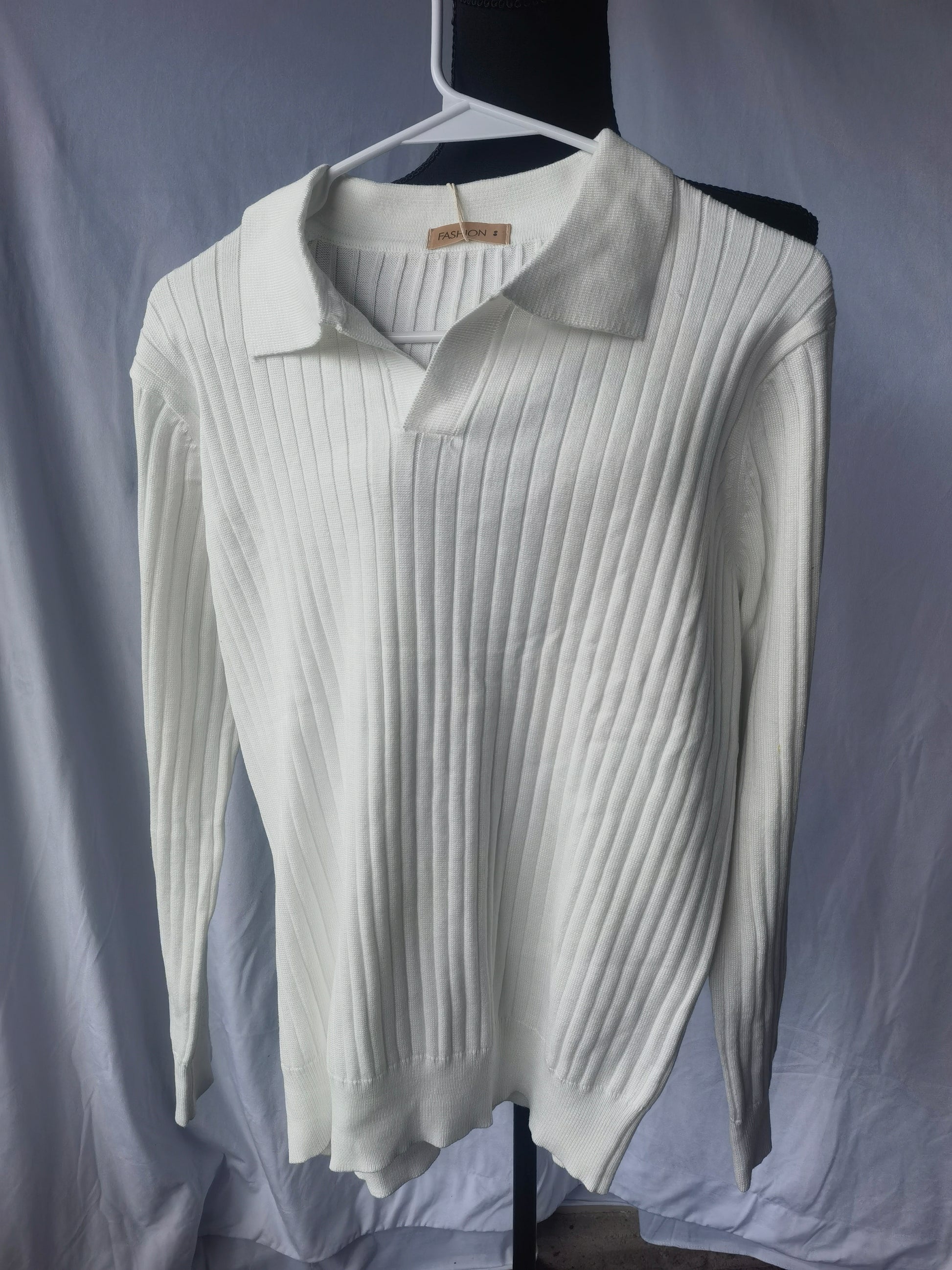 Men's Sweater V Neck Cable Knit Pullover Sweater Casual Long Sleeve Collared Twist Patterned Polo Sweaters size L