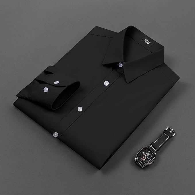 - Soft Material: this dress shirt with a clean look is lightweight and breathable, keeps your body dry and comfortable all day; stretch fabric fits perfectly on all body type and allows greater mobility in any direction with no restriction