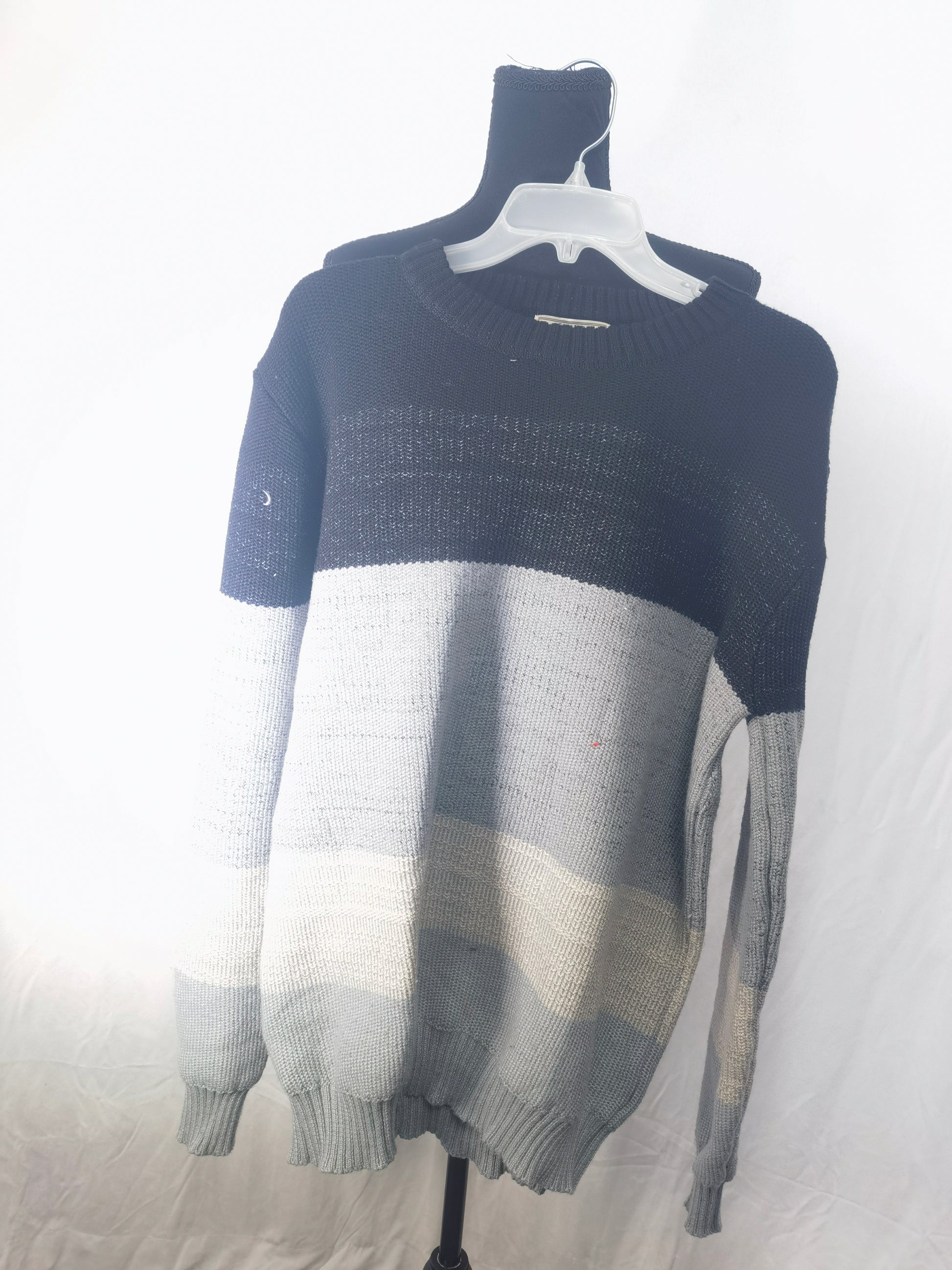 Men's Crewneck Pullover Sweater Winter Color Block Striped Sweater Soft Thermal Knitted Casual Long Sleeve Sweaters size L