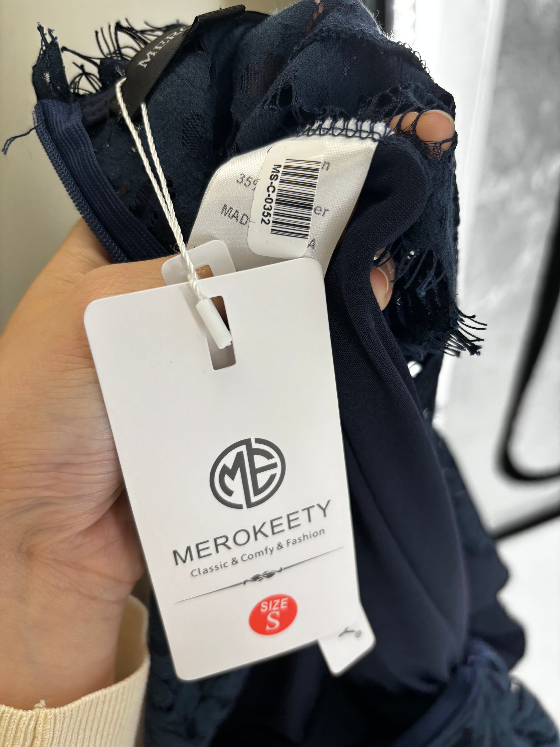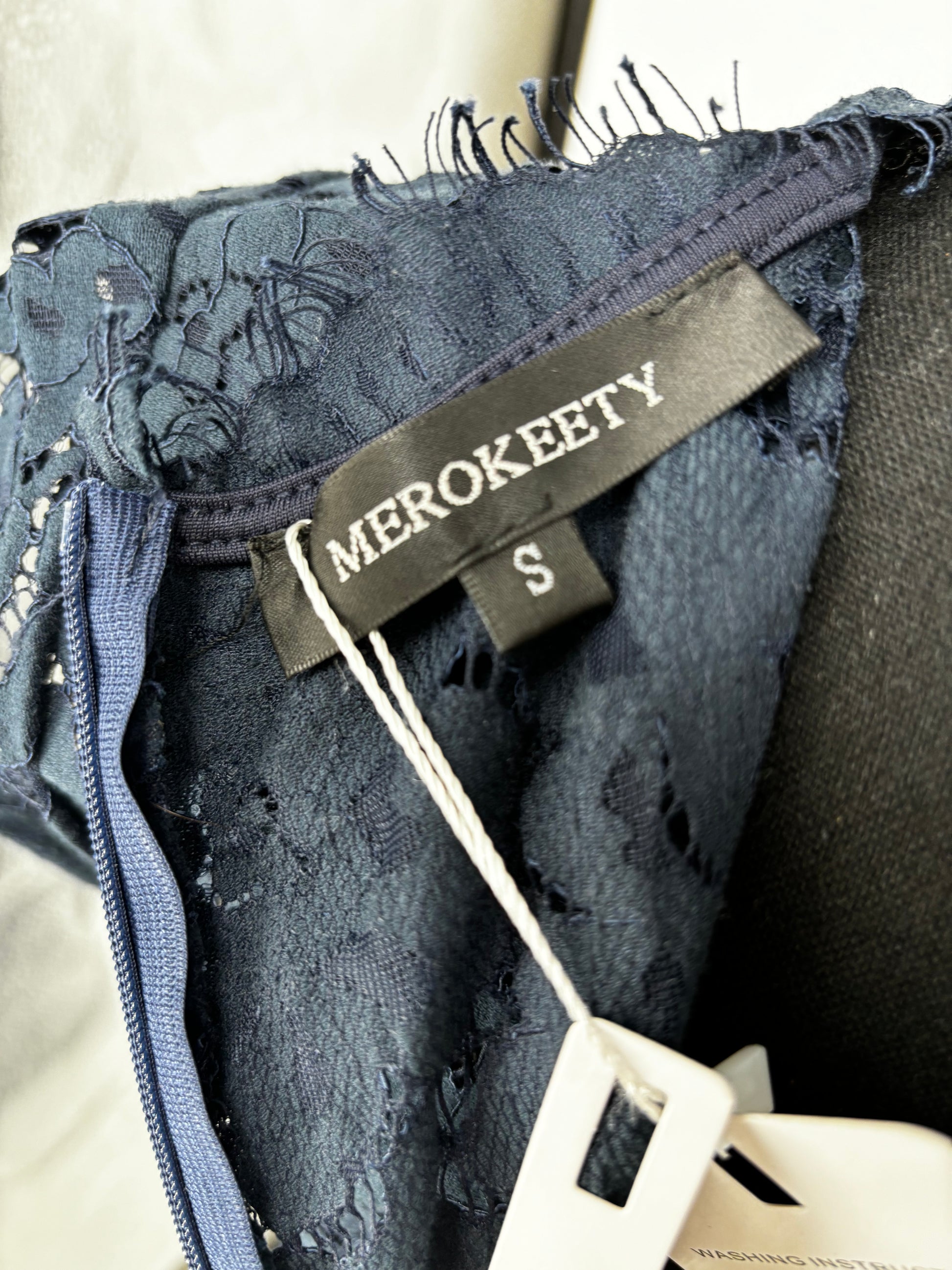 Merokeety Women's Dark Blue Lace Print Dress – Size S