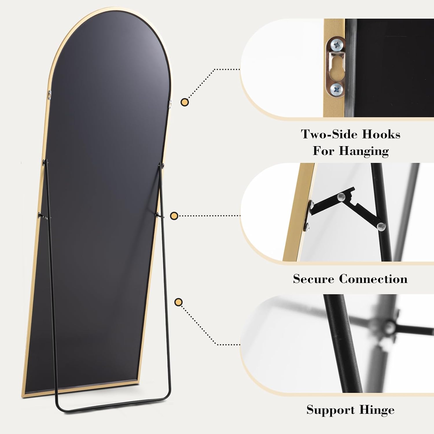 OLIXIS Arched Full Length Mirror 59"x16" for Bedroom, Full Body Mirror with Stand, Hanging or Leaning for Wall, Aluminum Alloy Thin Frame Floor Standing for Living Room, Tall, Gold