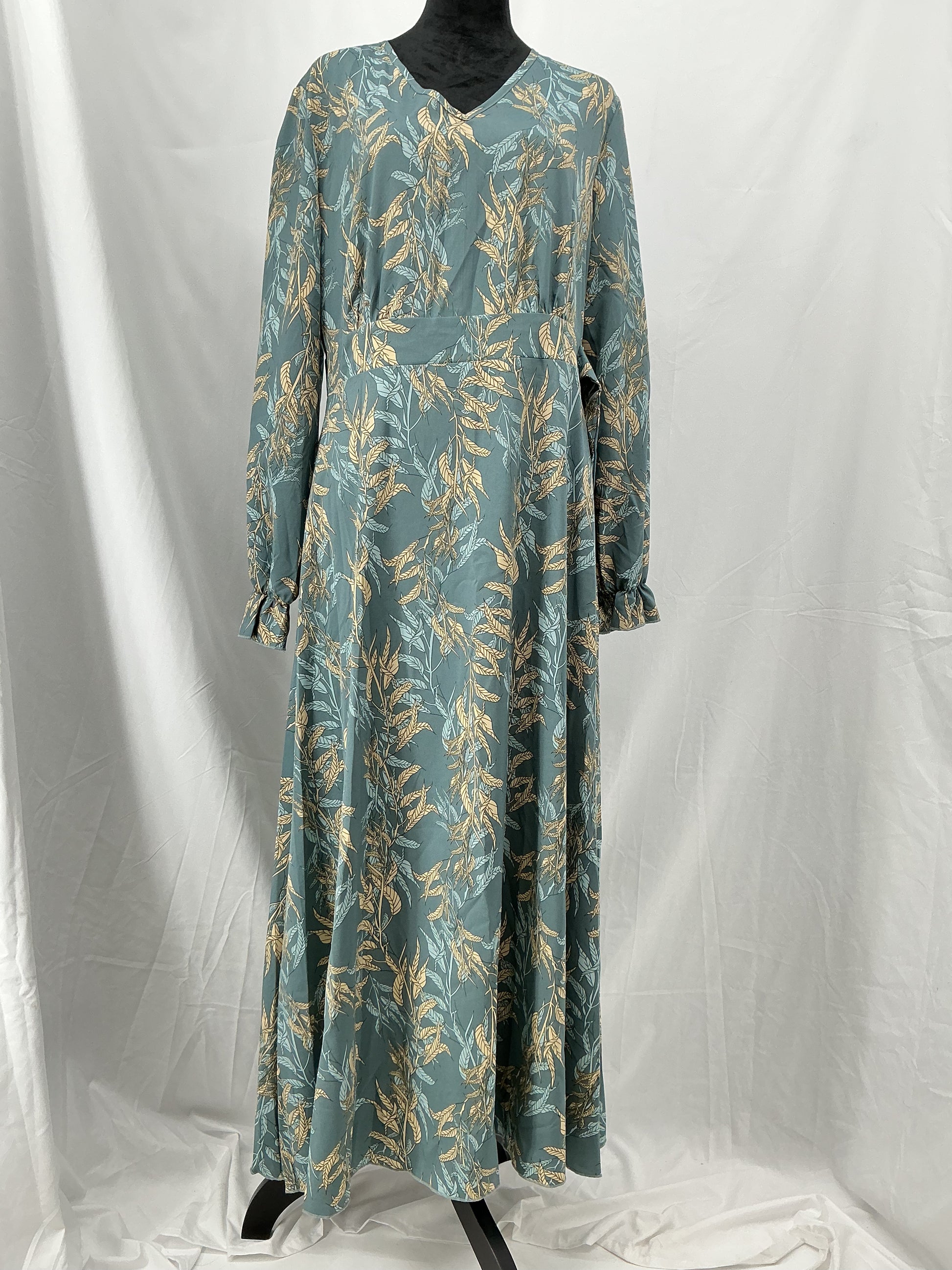 SHEIN Blue Long Sleeves Nightdress with Leaf pattern - Size L