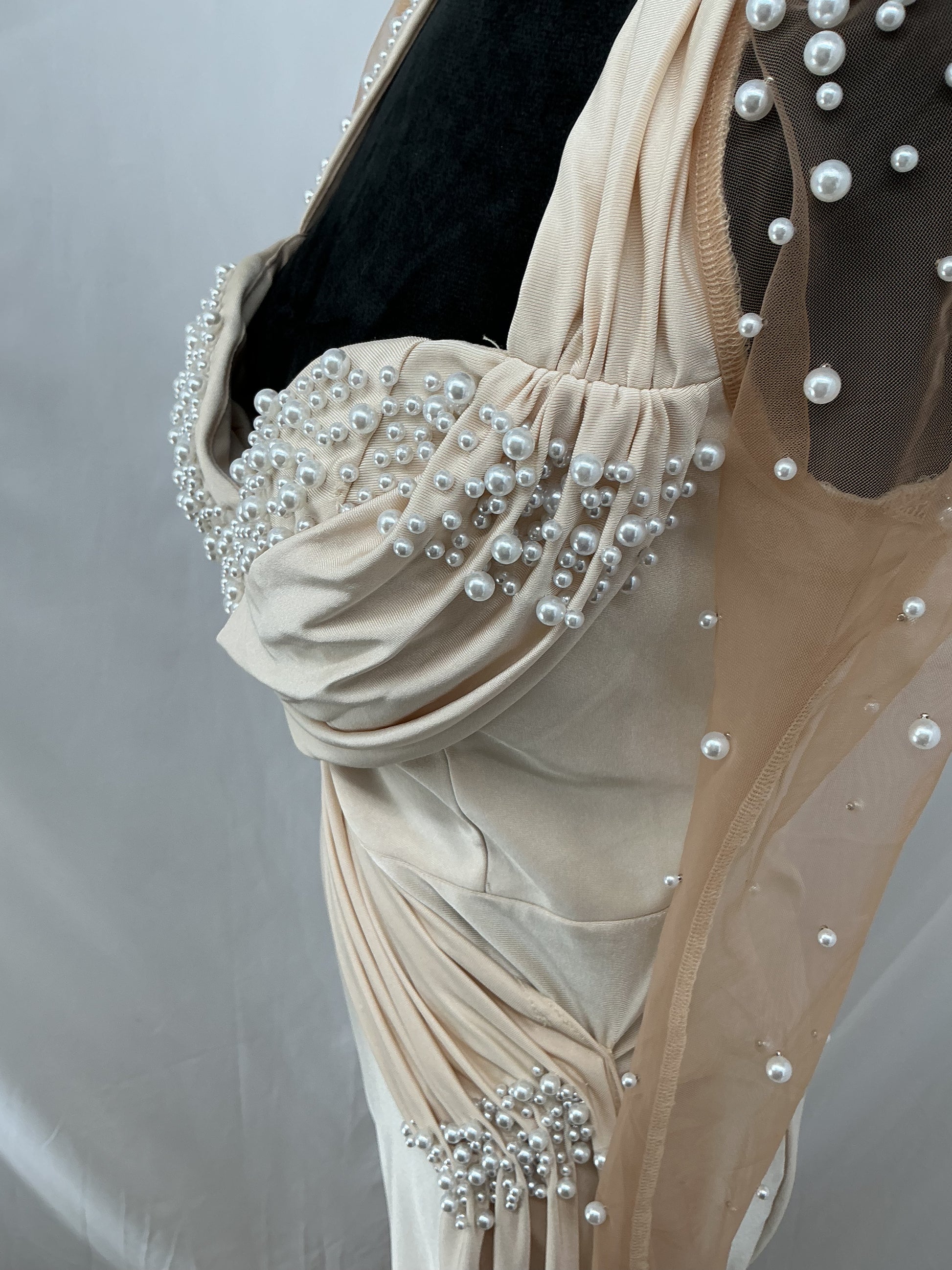 SHEIN Khaki Long Dress with Pearl - Size 6