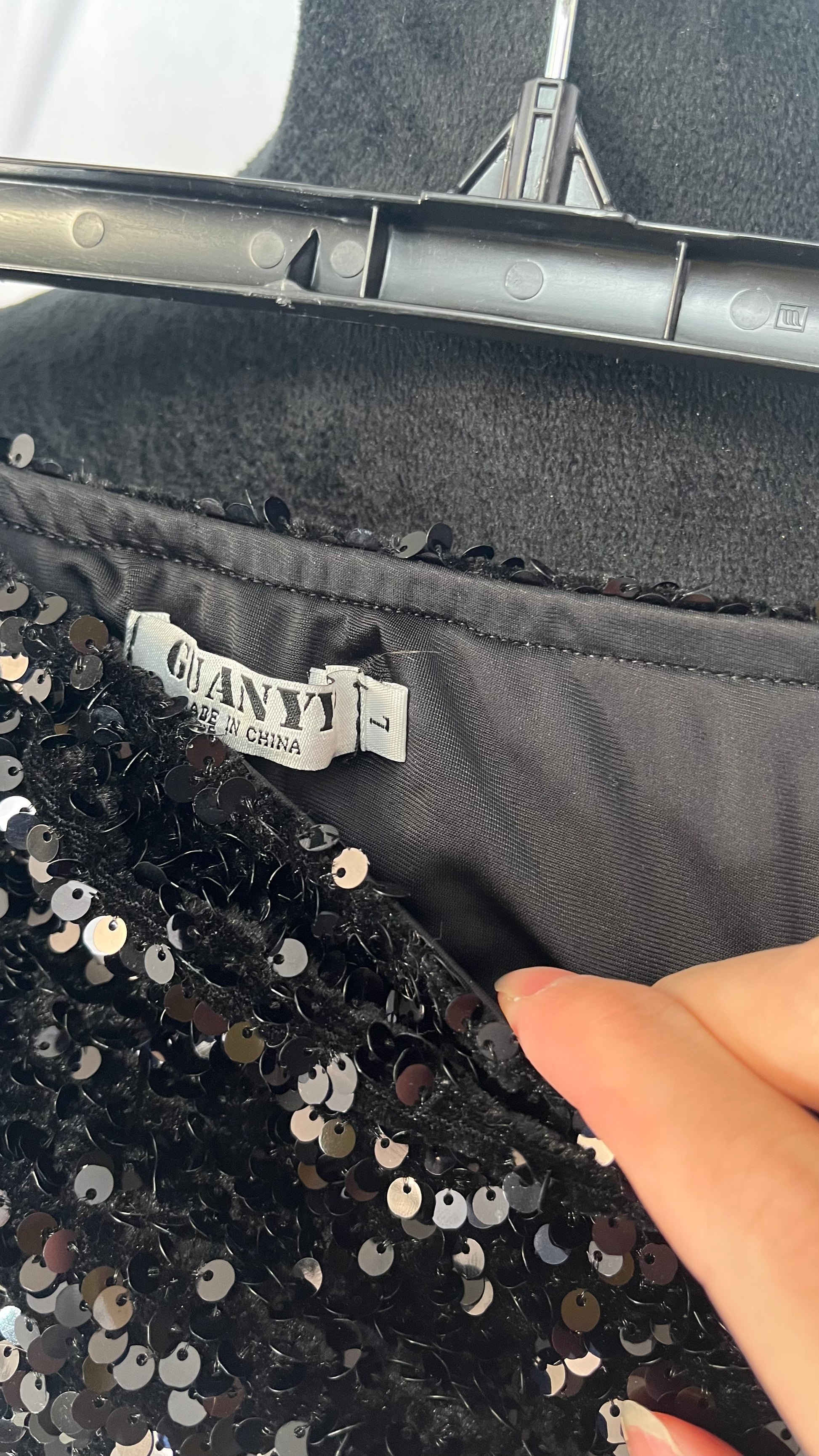 - A mini sequin club skirt with three layers of fabric: The outer layer is made of high-temperature PET sequin material, the middle layer is a sequin lining (100% polyester), and the innermost layer is a lining (86% polyester, 14% spandex). It is of high quality, soft, breathable, skin-friendly, and the sequins will not fall off easily.