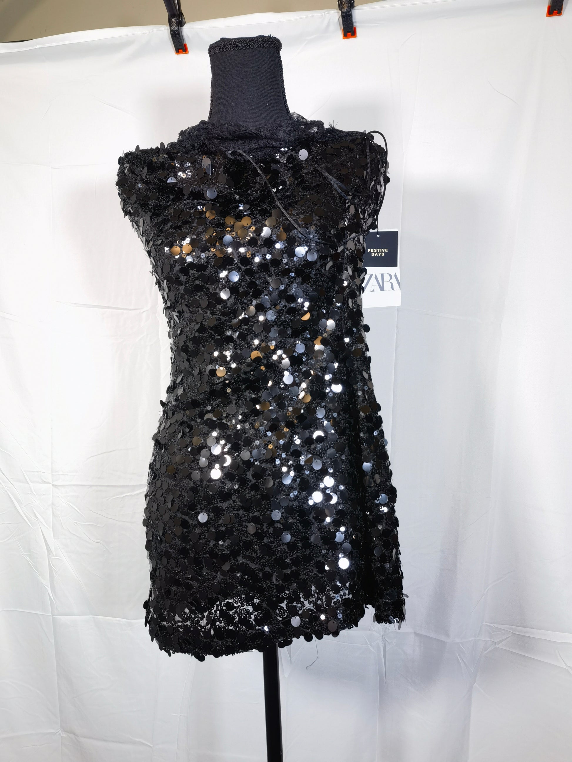 Zara Dresses | Zara Shoulder Pads Sequin Dress Zw Collection | Color: Black | Size S