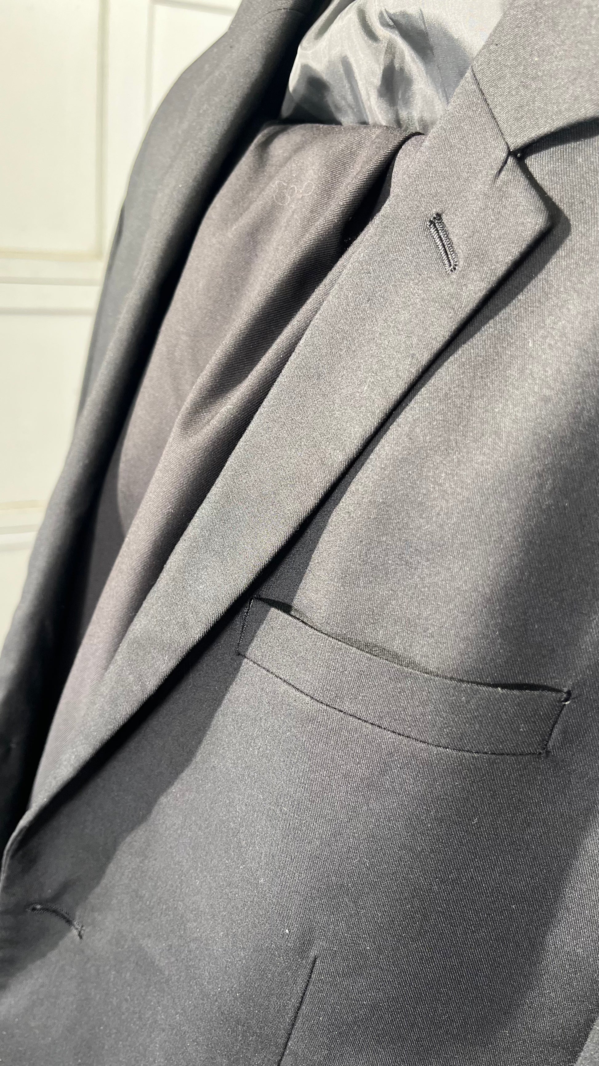 - The jacket is cut closer to the body with a higher armhole, trimmer chest, and a tapered sleeve.