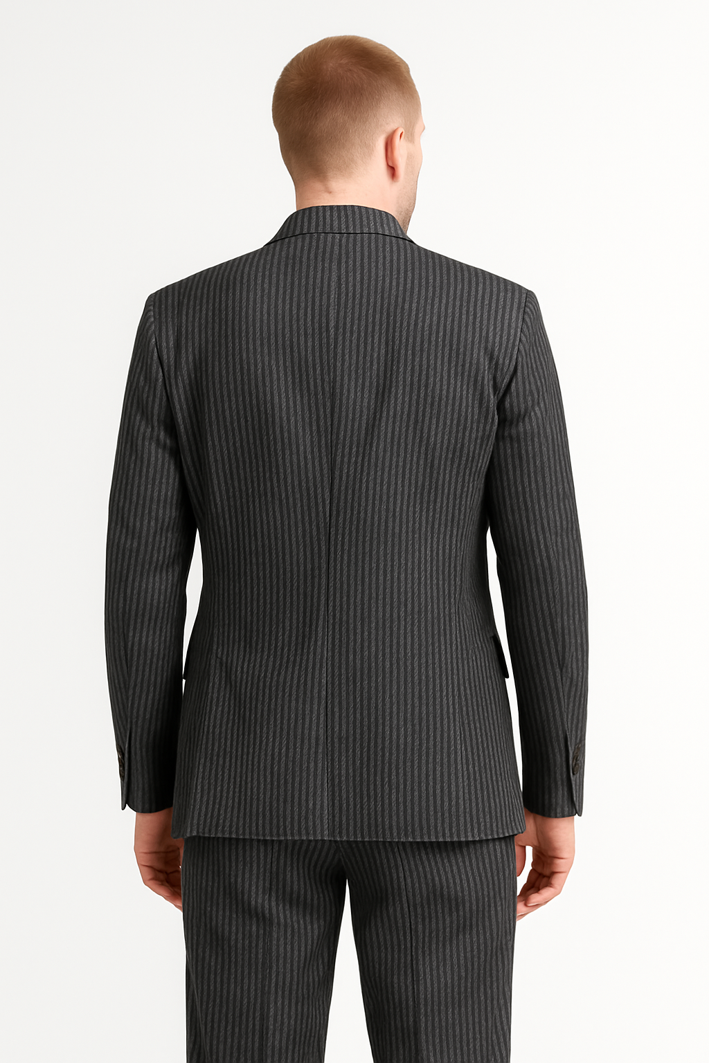 Alfani Mens Slim-Fit Double-Breasted Pinstripe Suit Jacket 42 Long Black Size L