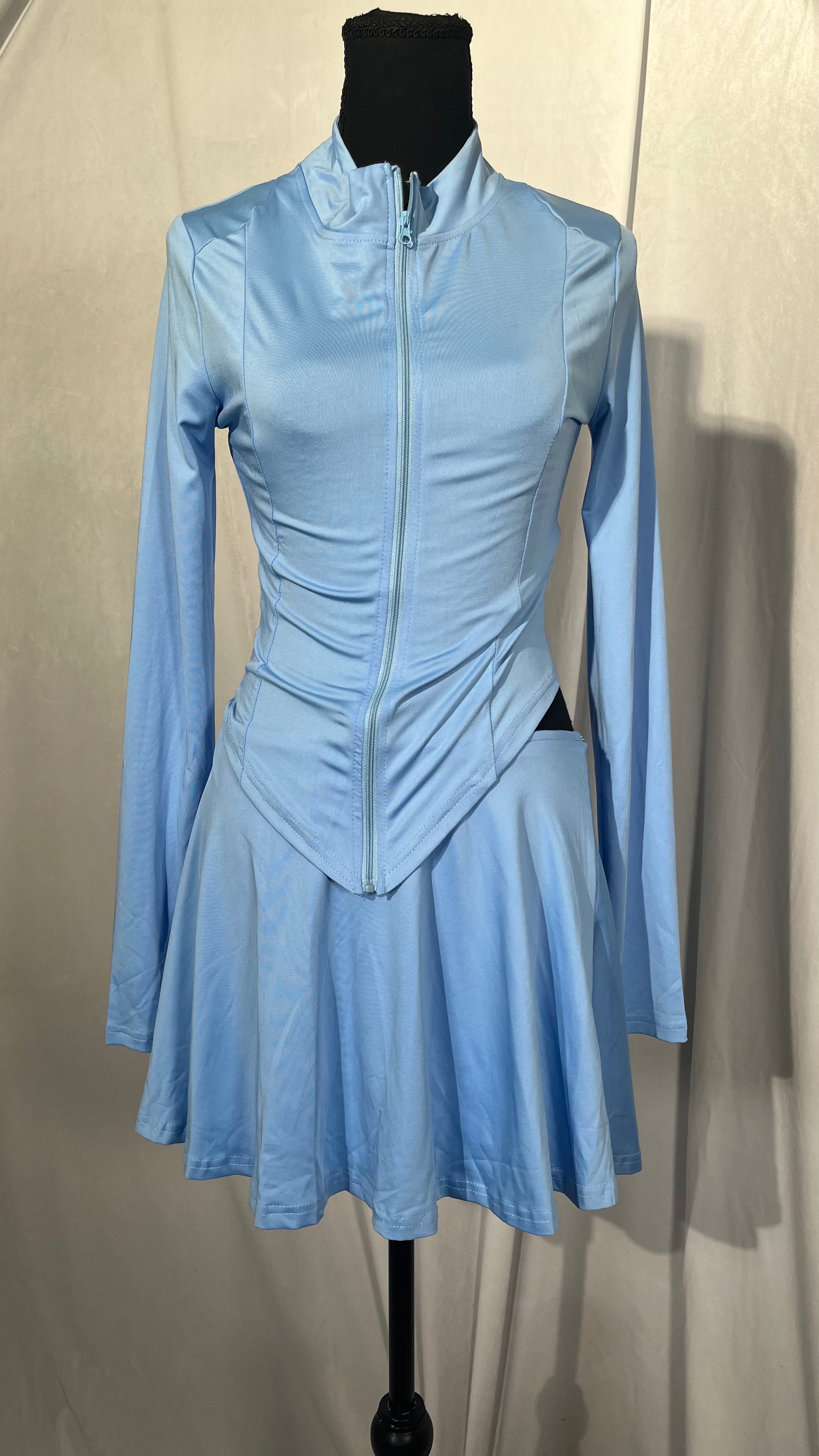 - Features: 2 Piece, Long sleeve, Zipper jacket, Tight fit, Solid Color, Mini skirt with shorts, Two piece tennis dress, skirt sets women 2 piece outfits, running outfits for women,going out streets tracksuits for women and girls.