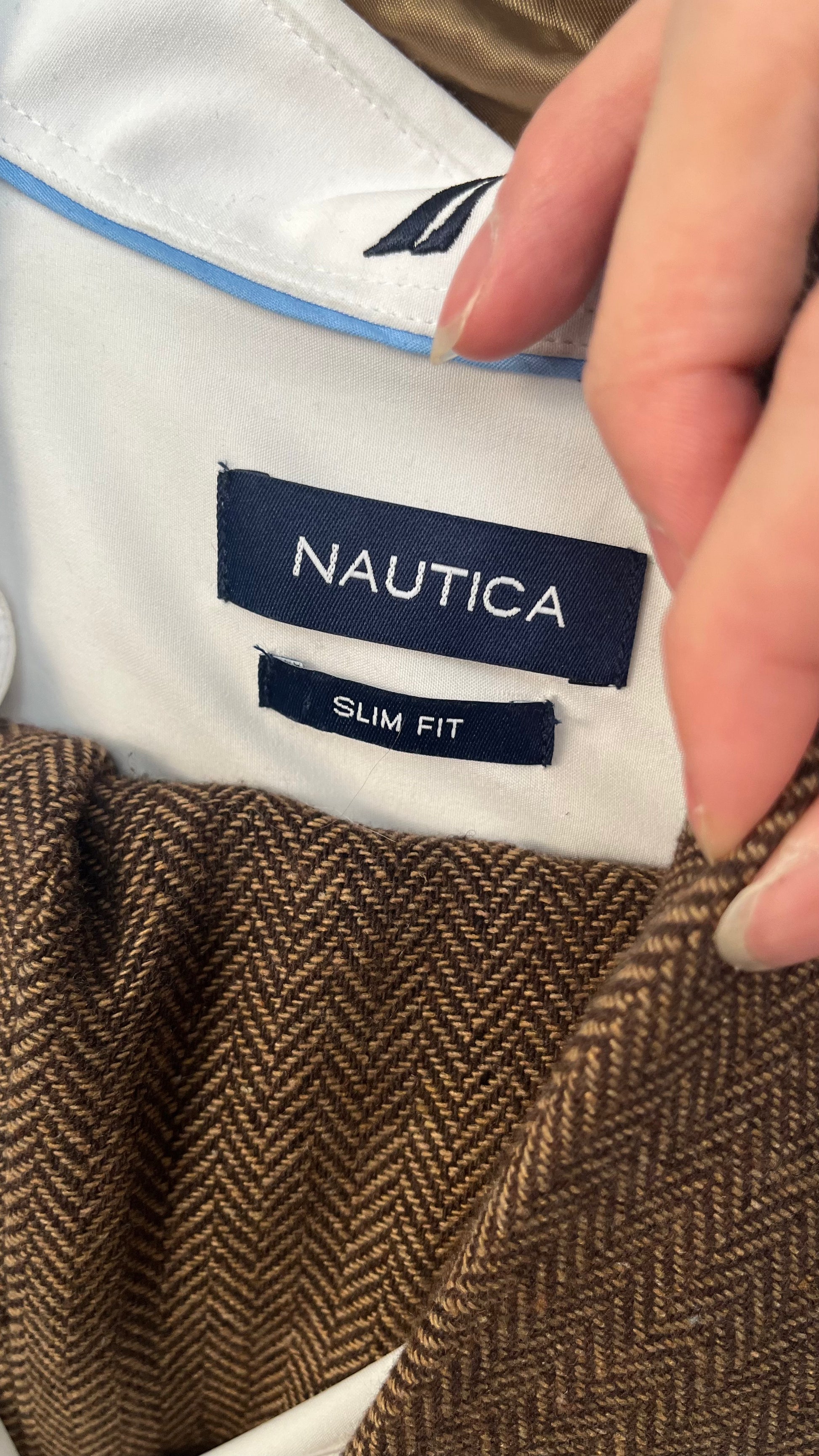 Mens Fall Herringbone Tweed Suit Jacket Business Formal Brown Blazer Gray Jacket for Men didn't find size on picture