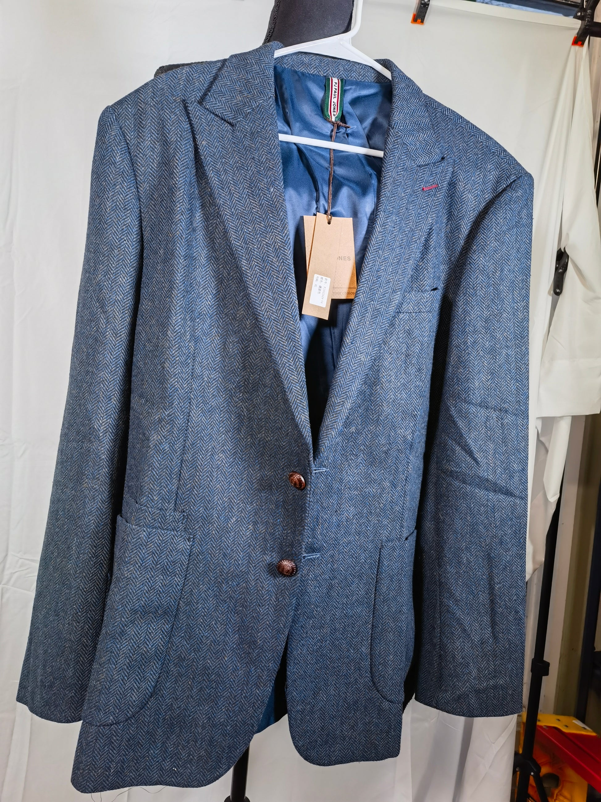 PJ PAUL JONES Mens Herringbone Blazer Vintage Tweed Wool Blend Sport Coat Jacket size XL