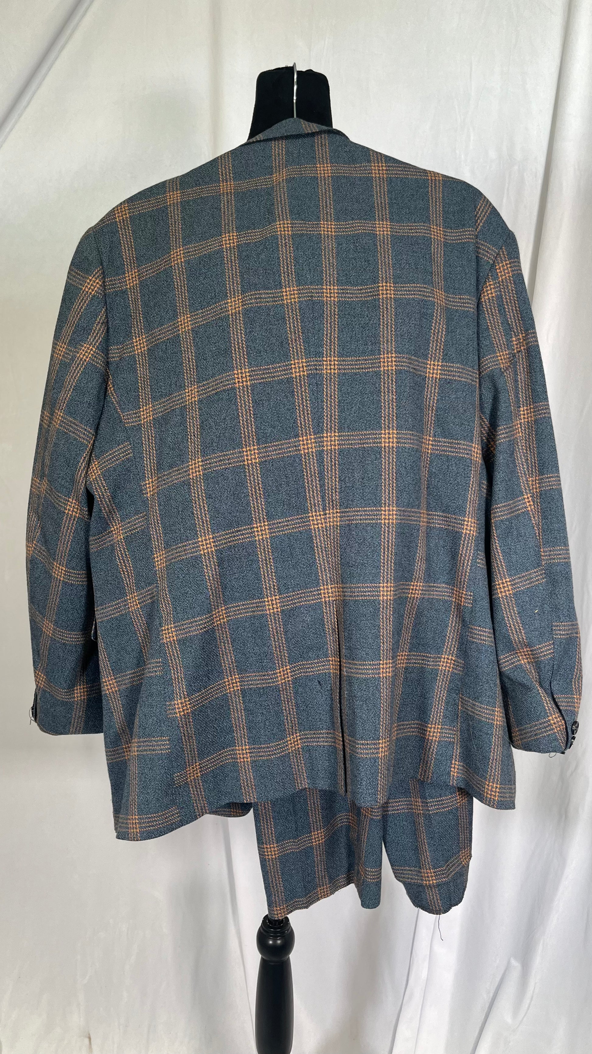Gray Brown Plaid Suit Men Slim Fit Mens Wool Suits Three Piece Formal Dress Suit MaleSize L