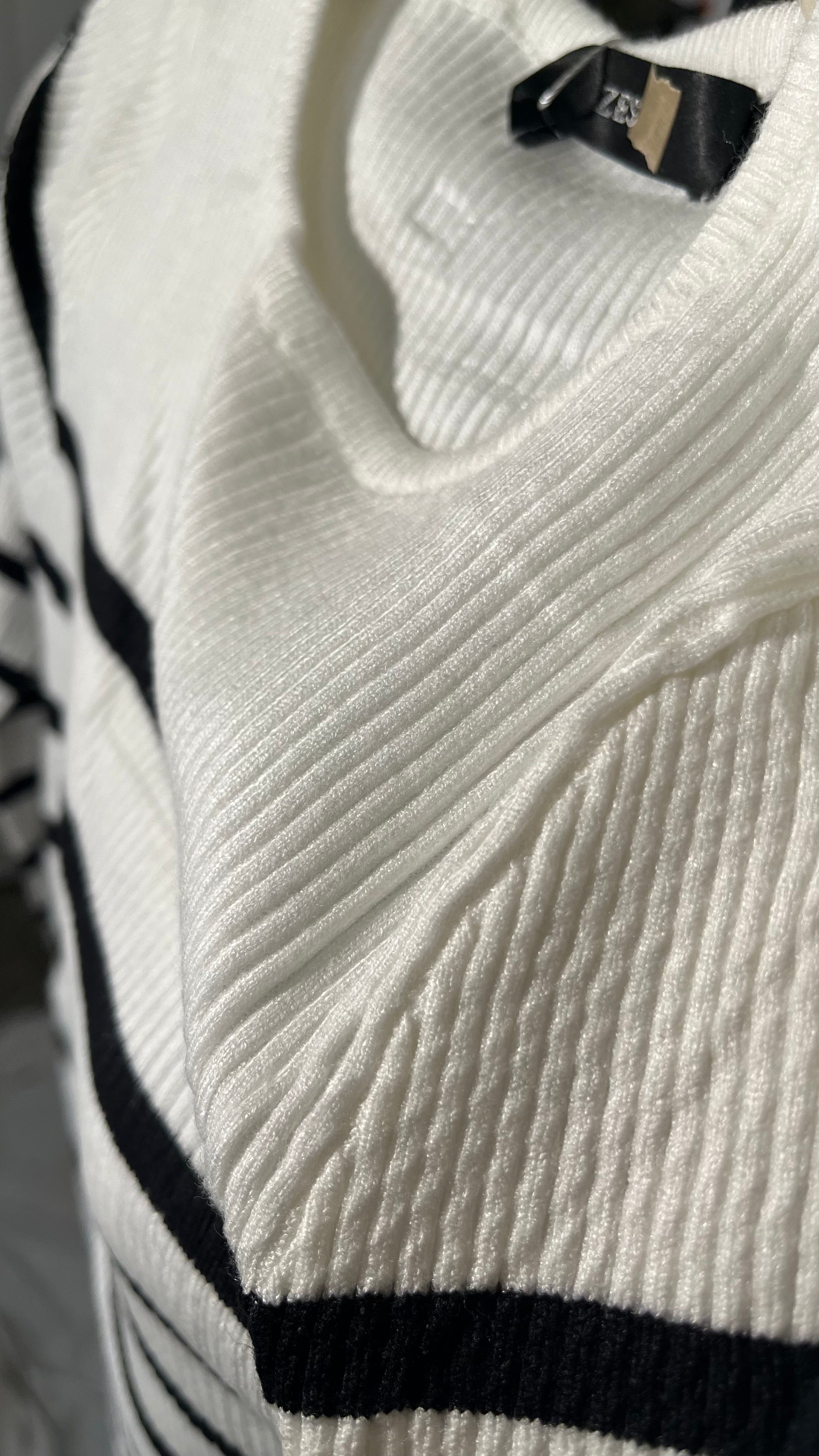 Alloaone Women's Round Neck Knitted Sweater Bottom Wool Pullover Stripe Top Size S